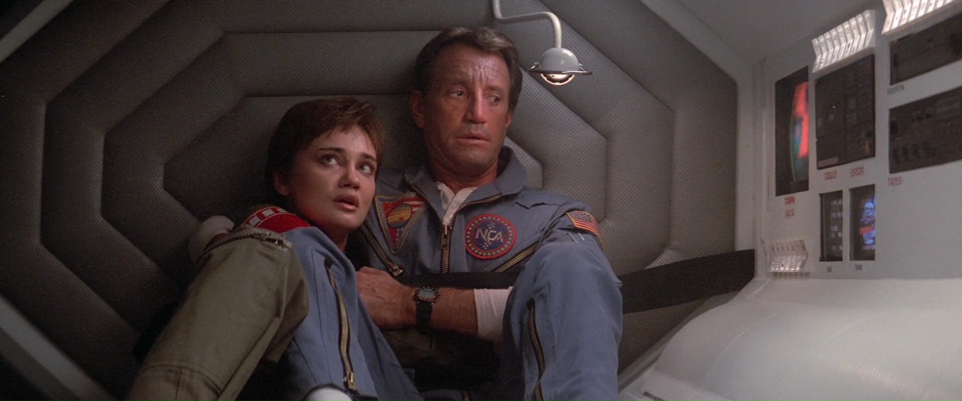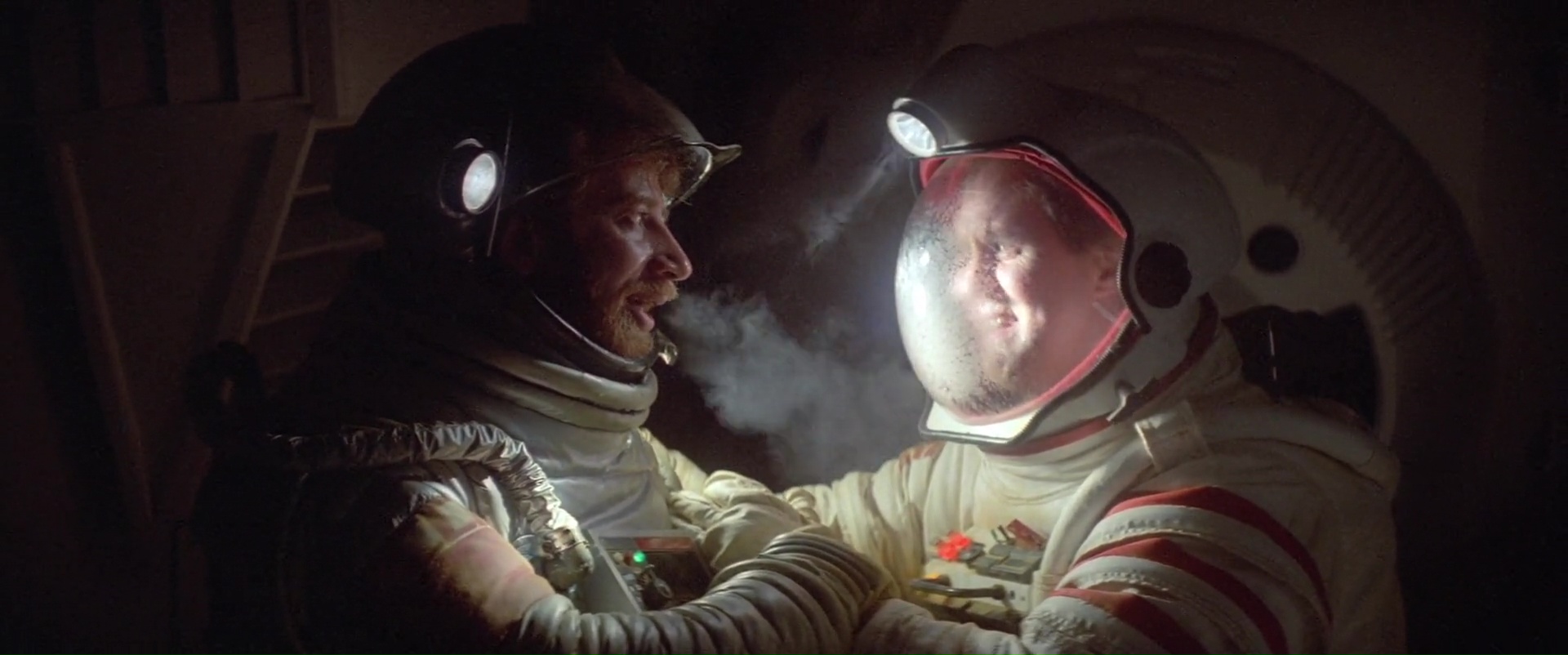 Oui, 2010 est un bon film, même un très bon film de science fiction. Il ne sert à rien de la comparer à 2001, les deux films ne jouent pas dans la même catégorie, et n’ont d’ailleurs pas le même but. L’histoire débute donc neuf ans après les événements de 2001, après la perte de contact de Discovery. Une équipe, mi Américaine mi Russe, est envoyée sur Jupiter pour retrouver Discovery, et rebrancher HAL, l’ordinateur de bord, afin de comprendre ce qui a bien pu se passer, ce qui a causé la mort de l’équipage, et la disparition de David Bowman. Et également aussi pour retrouver le fameux monolithe, identique à celui trouvé sur la lune. Alors oui, bien entendu, datant de 1984, cette suite paraît un brin vieillotte par certains aspects. Non pas par ces effets spéciaux, la plupart tenant toujours bien la route, mais par le contexte même de son histoire. Le contexte ? Oui, la guerre froide qui n’est pas terminée, les tensions entre Américains et Russes. De très bonnes idées en soit, qui donnent de la profondeur au récit, surtout que la guerre froide n’était pas terminée lors de la sortie du film en 1984, et encore moins lors de l’écriture du roman 2010 : Odyssée 2… mais on le sait à présent, en 2010, tout ça, ça n’existait plus. C’est bel et bien dans son contexte que 2010 a vieillit ! Au-delà de ça par contre, 2010 se fait un récit plutôt intéressant, et surtout un bien bon film de science fiction, très différent de l’original certes, mais qui n’a pas à rougir, loin de là ! Si son histoire n’est pas toujours parfaite et que certains moments, notamment vers la fin, semblent un peu too much, l’ensemble tient bien la route, et est aidé par plusieurs éléments.
