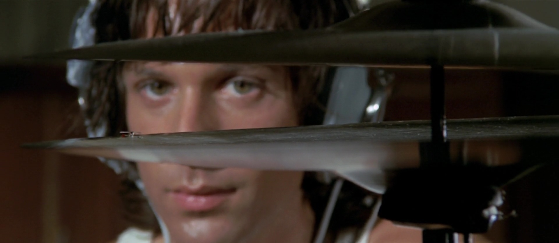 Longtemps très rare et donc dur à se procurer, 4 Mouches de Velours Gris est le troisième long métrage de Dario Argento, et le film concluant sa trilogie animalière, constituée de L’Oiseau au Plumage de Cristal et du Chat a Neuf Queues. Soit un très grand film et un film quelque peu raté et ennuyeux. Quatre Mouches de Velours Gris mélange les deux aspects des deux précédents métrages, et Argento continue d’expérimenter pour pouvoir ensuite atteindre le style qu’on lui connaît en 1975 avec Les Frissons de l’Angoisse. Ici donc, encore et toujours un giallo. Mais dès les premières secondes, Argento prouve qu’il a un style, et expérimente, de plus en plus, au fur et à mesure des minutes. Si bien que oui, son métrage, tout en obéissant à tous les codes du genre, ne ressemble à aucun autre. Pour le meilleur et pour le pire. Visuellement déjà, c’est tout simplement splendide. La plupart des expérimentations d’Argento sont très réussies et le métrage a un côté totalement unique, que ce soit par la focale, le cadrage, et même l’usage des couleurs. Oui, le cinéma d’Argento continue à se mettre en place. Dans le fond, même si c’est moins glorieux, on retrouve pas mal d’éléments du cinéma d’Argento. Notre personnage principal, joué par Michael Brandon, est donc un batteur, un musicien. Comme toujours oui, le personnage principal doit être un artiste. Batteur ici, pianiste dans Les Frissons de l’Angoisse, danseuse dans Suspiria, écrivain dans Ténèbres, chanteuse dans Opéra… Dès la scène d’ouverture, Argento s’amuse du métier de son personnage principal, se permettant des plans à l’intérieur de divers instruments, dynamise son montage au rythme de la musique.