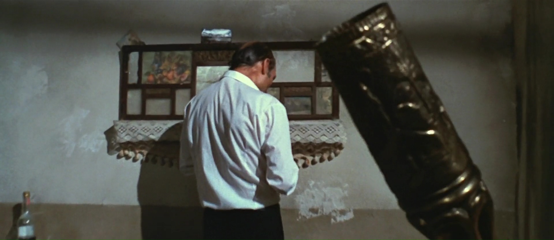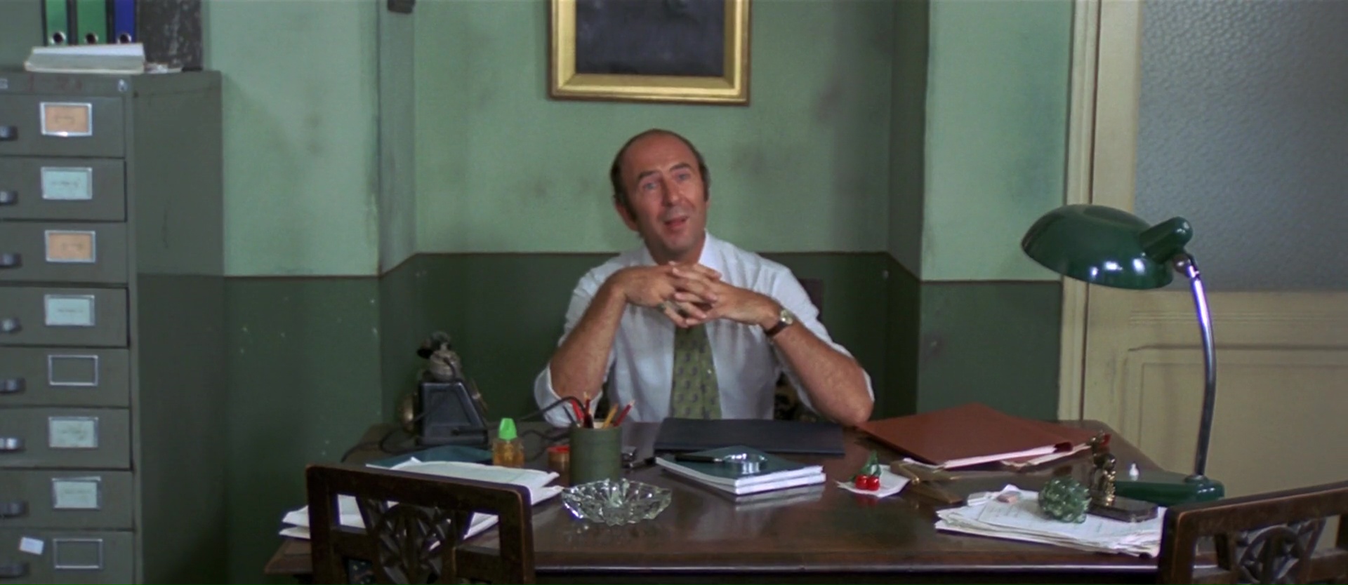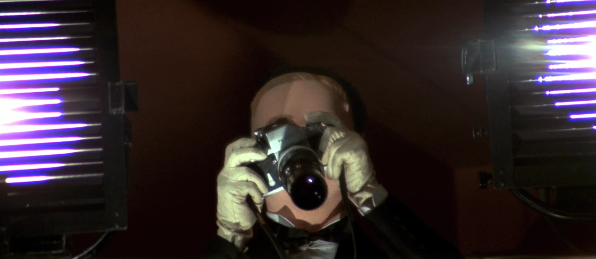 Malheureusement, si la mise en image se montre souvent virtuose et que l’on trouve clairement certains thèmes du réalisateur, le scénario invite plusieurs évidentes faiblesses dans son récit. Ce qui est dommage, car dés les premiers instants, on a envie d’aimer son film. Une répétition musicale, une silhouette avançant dans la rue, un meurtre dans un théâtre vide, puis un tueur portant un masque enfantin et prenant des photos. Oui, tous les éléments du giallo sont là. On aura notre enquête, notre personnage qui doute de tout et de tout le monde surtout, les victimes, les témoins qui vont vite devenir des victimes aussi, un détective privé. Notons d’ailleurs un casting plutôt étrange, alternant le bon, le moins bon et les curiosités. Voir en détective privé homosexuel Jean-Pierre Marielle fait sourire, tandis que l’on trouve en ami du notre héro Bud Spencer. Malheureusement à côté de ça, notre personnage principal joué par Michael Brandon manque d’envergure, de charisme, et d’autres personnages ajoutent des notes d’humour qui n’ont pas forcément leur place dans le récit, amenant donc le premier vrai faux pas de l’œuvre. Oui, 4 Mouches de Velours Gris plonge parfois dans l’humour, et cela relâche la tension, mais retire également le sérieux de certaines parties du récit, et c’est dommage.