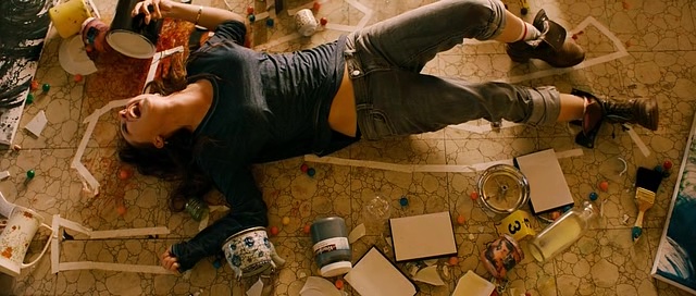 Le casting sera d’ailleurs un des points forts du film, car à côté, celui-ci accumule les petits défauts gênants, malgré sans doute de bonnes intentions de départ. Nous suivons donc Gwen, aussi appelée Flamengo, dans sa quête de vengeance envers Cyrus, qui a tué son petit ami, Aster. Elle sera aidée en cours de route par Ty. Simple sur le papier comme prévu, beaucoup plus brouillon à l’écran. Pour brouiller les pistes donc, Gwen est amnésique en plus de posséder deux personnalités, et le montage nous fait passer d’une personnalité à l’autre toutes les 5 minutes, donnant un rythme étrange au métrage, comme si l’on nous forçait à toujours revenir en arrière plutôt qu’à faire avancer l’intrigue. Le procédé visuel pour passer d’une personnalité à l’autre est vite redondant donc. La mise en scène, brouillonne, est d’ailleurs l’un des points faibles du métrage. Usant d’effets de montage vite usants, tout comme de filtres et d’effets pas toujours bien appropriés, elle énerve malgré quelques bonnes idées parfois. La mise en scène refuse de se poser, instaurant sans arrêt du mouvement, passant d’une personnalité à l’autre, jouant sur la répétitivité (à chaque changement de personnalité, et donc retour dans le passé ou retour au présent, on aura droit à des plans de notre précédente incursion dans cette timeline). Heureusement, certains moments s’avèrent déjà mieux trouvés comme lors de certains flashbacks, et le scénario incorpore quelques idées un peu plus folles pour dynamiser le tout, comme cette vendeuse d’armes, Lemmy, qui change de musique suivant si elle se détend ou fait du business.