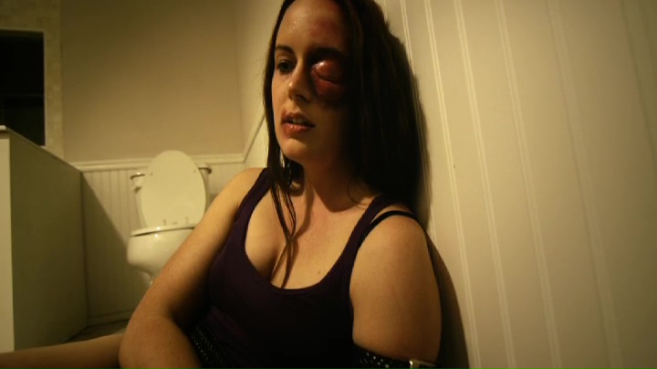 Là est encore le moins grave, puisqu’en tournant dans des lieux parfois exigu (les couloirs de l’hôtel, des petites chambres), le film se plante également dans un éclairage naturel assez baveux (tournage numérique oblige) qui tend parfois vers le orangé comme les caméras numériques aiment beaucoup le faire. On pourra toujours me dire qu’il y a pire, mais quand le film veut aborder un ton grave et que le reste ne suit pas, ça fait mal. Au-delà de ses défauts techniques, on pourra dire que les 35 premières minutes sont plutôt divertissantes malgré la vulgarité de certains moments. Il faut dire qu’entre quelques plans sympathiques, de bons maquillages, le film a pour lui deux actrices convaincantes en tête d’affiche. La première dont j’ai déjà parlé sur ce site, c’est Sarah Nicklin, que l’on découvre allongée dans un plan en plongée (qui pour une raison inconnue m’aura fait penser à un plan du Twin Peaks… sans doute car son personnage se drogue, comme Laura Palmer…). Malheureusement, elle sera la moins présente des quatre. À ces côtés, j’aurais pu découvrir Julia McAlee, blonde aux cheveux courts m’ayant pour le coup beaucoup fait penser à Jenny Wright (vous savez, la blonde à cheveux courts dans Aux Frontières de l’Aube et Lectures Diaboliques). Elle aussi s’en sort bien.