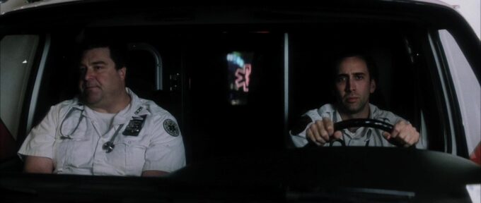 L’association de Martin Scorsese et de Paul Schrader a toujours donné de bien belles choses, même si beaucoup ne retiennent que Taxi Driver (1976) et Raging Bull (1980) de cette association. Sauf qu’en plus d’avoir également signé des scénario pour Sydney Pollack (Yakuza en 1975), Brian De Palma (Obsession en 1976), John Flynn (Rolling Thunder en 1977) ou Peter Weir (Mosquito Coast en 1986), Schrader aura également écrit deux autres métrages pour Scorsese. La Dernière Tentation du Christ en 1988, film polémique s’il en est, et le film du jour, à savoir Bringing Out of the Dead, À Tombeau Ouvert chez nous (Ressusciter les Morts au Québec) en 1999, avec notre grand Nicolas Cage. Un film injustement souvent oublié, à la fois de la filmographie de Schrader, de Scorsese ou de Cage. Un grand film ? Oui ! Mais pas un film qui se laisse approcher de manière simple. Car les deux auteurs explorent encore les bas fonds de New York, et par extension, de l’âme humaine. Après Travis Bickie et son taxi dans les rues nocturnes de New York, après Jake LaMotta et la difficulté du monde de la boxe, et de la vie privée, voici Frank Pierce, ambulancier au bord du gouffre, dépressif, légèrement alcoolique, souffrant d’insomnies, et voyant les fantômes de tous ces malheureux qu’il n’a pas pu sauver au cours de ses nombreuses nuits à arpenter les rues sombres de la ville. C’est sûr que ça ne respire pas la joie et la bonne humeur, A Tombeau Ouvert est une œuvre clairement sombre, dépressive. Enjouée par sa bande son, comme toujours avec Scorsese, alternant les morceaux rock d’une époque pourtant révolue, à base de Van Morrison dés l’ouverture, de The Who, R.E.M, The Clash ou encore UB40, mais terriblement dépressif et parfois même fataliste dans son propos, dans sa mise en image, et dans le jeu de Nicolas Cage, habité, le regard meurtri, parcourant les grandes rues et petites ruelles de la ville, soir après soir, avec l’espoir que cette fois-ci, les choses seront différentes.