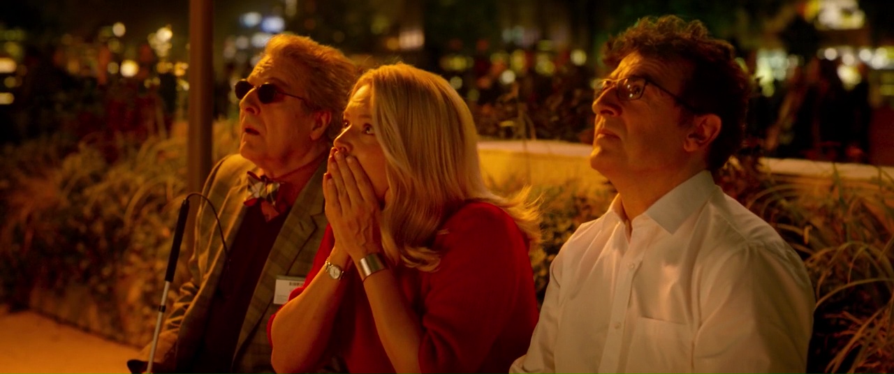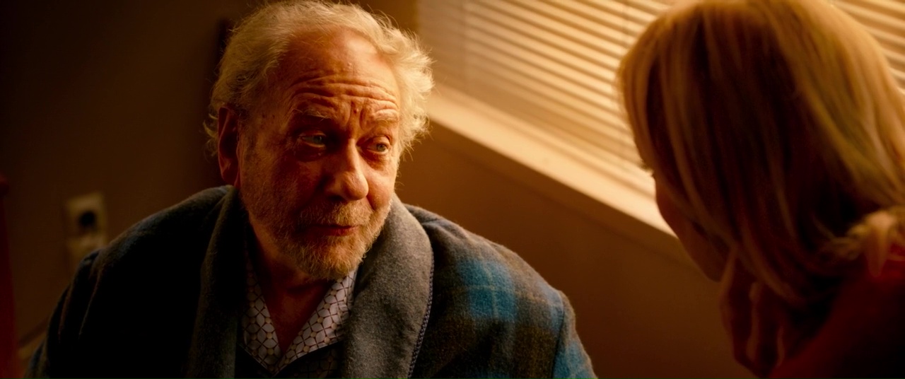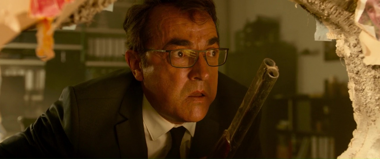 Mais pas que, car on tape aussi sur les sociétés, encore, et surtout leur gestion des employés, parfois très compétents mais trop vieux et donc que l’on met de côté pour former des jeunes, ou encore embauchant des handicapés, car c’est bien vu et, ça amène aussi des aides financières de l’état… mais bon, ça emmerde, donc on prend un aveugle et on le met dans le noir au service que personne ne visite jamais, à savoir, les archives. Mais pas que hein. Adieu les Cons donc, c’est l’histoire de Suze, gravement malade et qui n’en a pas forcément pour longtemps, et qui décide de partir à la recherche de son fils, qu’elle a du abandonner lors de l’accouchement, alors qu’elle n’avait que 15 ans. Alors que forcément, sa recherche n’avance pas, car tout n’était pas informatisé à l’époque, et que les accouchements sous X ne sont pas si simples, elle croise la route de Jean Baptiste, employé en plein burn-out qui tente de se suicider, mais pas de bol, le coup rate et touche un collègue. Alors que tout le monde croit à une tentative de meurtre, JB n’a même pas le temps de s’expliquer que Suze le kidnappe et le fait marcher. Elle dira ce qu’il s’est réellement passé à condition qu’il l’aide à retrouver son enfant. Et sur leur route donc, ils vont croiser monsieur Blin, archiviste aveugle, qui va les aider dans leur quête. Simple, efficace, rapide, d’ailleurs le film n’est pas bien loin, comme souvent chez Dupontel (Enfermés Dehors par exemple ne durait que 1h23). Et d’entrée de jeu, on retrouve clairement ici la patte Dupontel, celle que le public cinéphile aime ou déteste au premier coup d’œil. Une mise en scène dynamique, une caméra mouvante qui tente souvent des choses, des placements improbables, des couleurs parfois bien saturées, un humour parfois méchant, et parfois plus grimaçant, hystérique, criant. Et ce jusqu’au caméo encore une fois de Terry Gilliam. C’est plus doux et plus posé qu’avant, sans doute moins méchant, mais on retourne malgré tout clairement dans ce qui faisait le sel de son œuvre.