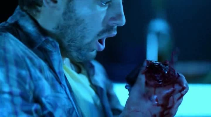 Il n’y a donc pas grand-chose à retenir de la première partie du métrage, trop longue. Eli Roth ne se révèle pas mauvais acteur, les autres font correctement le boulot, on n’échappera pas à une bonne série de clichés (les hommes draguent, les femmes sont parfois faciles, surtout si elles viennent de Russie), on aura droit à une apparition très furtive de Selena Gomez, et le temps semble long. On nous présente le Chili, les plages, les villes, puis le soir, c’est la fête. Rien de bien passionnant, et quand on ne connaît pas l’histoire, on aimerait bien que ça bouge enfin, car on ne voit absolument pas où le film veut en venir. Puis c’est le drame, le bon gros drame, avec l’apparition d’un tremblement de terre, qui vient alors plonger le film dans le genre catastrophe, le tout mâtiné de scène d’horreur réalistes. Et là, le métrage change radicalement donc, et se fait bien plus prenant. Les personnages prennent enfin un peu plus d’épaisseur et deviennent plus intéressant à partir du moment qu’ils se montrent sous leur vrai visage. Ce sera souvent chacun pour sa peau. Le tremblement de terre en lui même sera un très bon moment, où le nombre de figurants va se réduire à vu d’œil très rapidement, dans des effets sanglants très réussis. Malheureusement, quand le film devra faire appel à quelques effets numériques (très rares heureusement), c’est beaucoup moins convaincant, notamment lors de quelques effets de flamme.