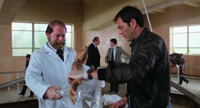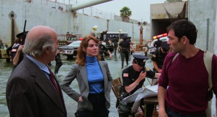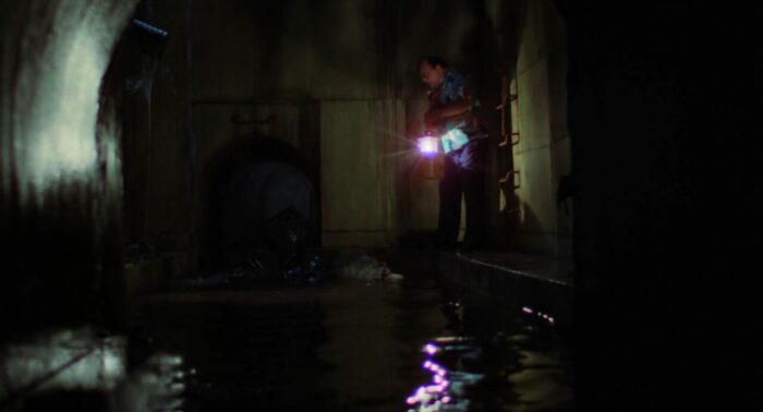 Bref, dans les grandes lignes, l’histoire d’Alligator, on la connait, tant elle représente aujourd’hui un peu le cliché ultime du film de genre, en mélangeant la légende urbaine des petits alligators qui sont jetés dans les toilettes et erreraient dans les égouts de certaines villes Américaines, et la classique société qui fait des expériences pas très sympathiques sur des animaux et se débarrasse des carcasses dans les égouts, qui serviront de repas à l’alligator qui va donc grandir pour atteindre une taille peu conventionnelle, et décider que l’humain est une nourriture contenant bien plus de vitamines. Au niveau des personnages aussi, on peut dire qu’Alligator contient tous les archétypes attendus par le genre, avec les méchants riches à la tête de sociétés qui n’ont que faire des lois (et seront donc bouffés par l’alligator), le flic que personne ne semble croire et qui se traine un trauma, la spécialiste des alligators qui va l’épauler dans sa traque, sans oublier le classique pro de la chasse qui apparaît au milieu du récit et fera les frais de sa bien trop grande confiance en ses capacités. Mais si en 1980 et en seulement cinq petites années, Les Dents de la Mer avait déjà eu de très nombreuses copies avec requins, crocodiles, alligators (Le Grand Alligator de Sergio Martino en 1979 par exemple) et autres créatures parfois mutantes, Alligator de Lewis Teague parvient presque à empiler tout ce que le genre a à proposer en seulement 90 minutes, et en étant digeste et même plus que sérieux dans sa proposition. Pourtant, faire un film avec un alligator géant dans une grande ville Américaine, et le tout avec un budget de seulement un million de dollar, et avec un alligator qui, comme pour le requin des Dents de la Mer, avait du mal parfois à fonctionner, ce n’était pas une tâche aisée. Mais entre son scénario bien rodé, le sérieux de sa mise en scène, son casting et même son alligator, parfois suggéré, parfois réellement impressionnant à l’écran comme lors de certaines attaques, notamment à un mariage, Alligator se place comme un bon représentant du genre, et sans doute l’un des meilleurs de l’époque, sans non plus être un grand film.