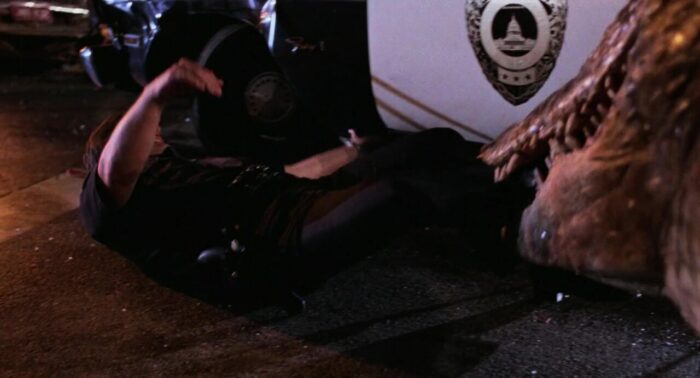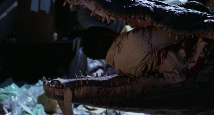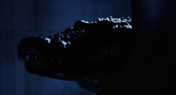 Sans doute car Lewis Teague ne voulait pas livrer un grand film, mais juste un divertissement efficace, ce que son métrage est. Ca respire le B movie, mais le B movie fait avec passion et envie, au système D qui parvient à tirer parti de ses contraintes pour en faire des forces, et ainsi rendre ses attaques animales parfois impressionnantes en variant les techniques (maquettes, animatroniques et j’en passe).D’ailleurs, pour l’anecdote, si l’on connait aujourd’hui tous Bryan Cranston, et que certains « chanceux » ont pu le découvrir avant sa célébrité justement chez Roger Corman dans sa production Dead Space en 1991 (tout est lié), il travaillait déjà ici, en 1980, dans le milieu du cinéma, derrière la caméra, puisqu’il était assistant des effets spéciaux, notamment pour la scène finale. En fait, ce qui fait d’Alligator une très honnête série B mais un film qui ne marquera sans doute pas les esprits, c’est simplement en fait qu’Alligator ne contient pas de réelles scènes à suspense, contrairement aux plus grands du genre. Sa structure est celle d’un film à suspense, avec des attaques qui montent crescendo, un alligator au départ peu montré, dans un environnement exigu (les égouts) avant qu’il ne sorte dans la rue et ne bouffe plus de monde, mais le métrage, aussi généreux soit-il, et parfois impressionnant dans ses effets, possède néanmoins un alligator parfois trop statique (la joie des effets qui ne fonctionnent pas toujours) pour rendre son carnage réellement menaçant. Et c’est dommage. Reste donc une petite série B tout à fait honnête, sérieuse, plaisante, et bien loin de sa suite faite 10 ans plus tard par Jon Hess. Ici, c’est bien rodé pour faire passer la pilule facilement. Et pendant longtemps, Alligator restera l’un des meilleurs représentants des alligators et autres crocodiles au cinéma.