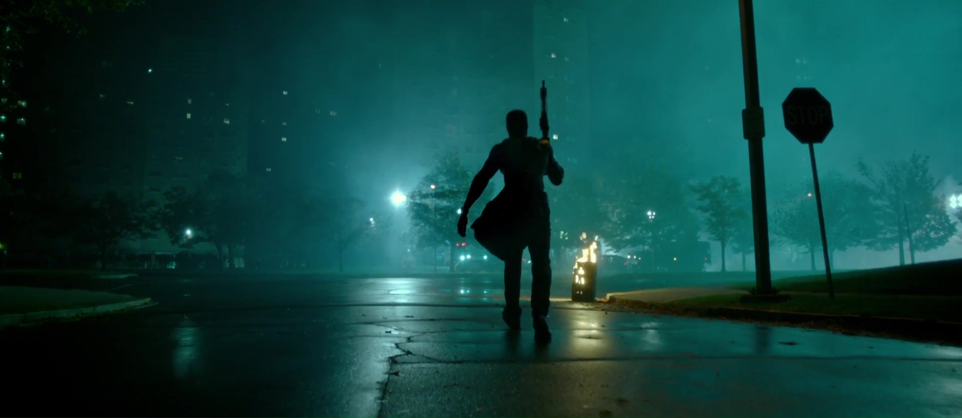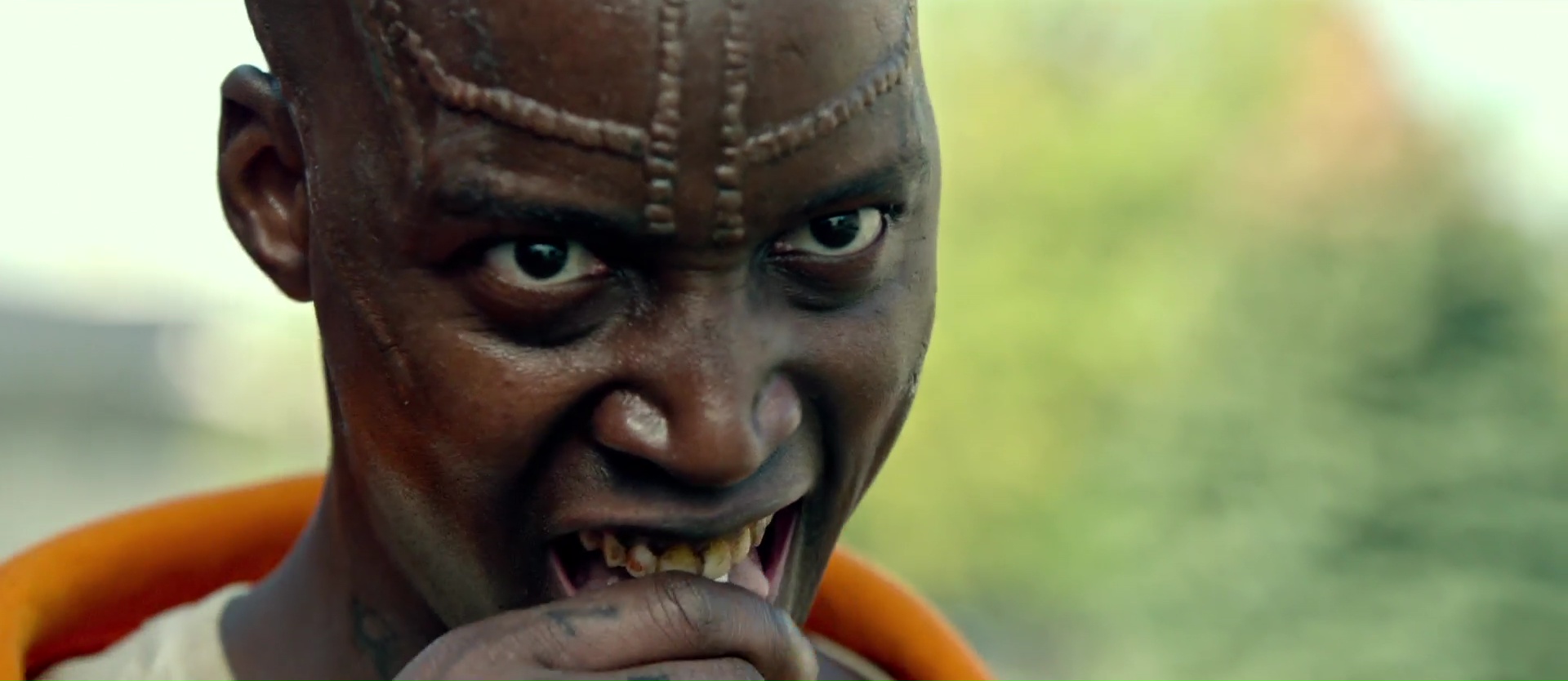 Les Origines donc, The First Purge, nous propose de suivre le lancement de la toute première purge sur l’île de Staten Island à New York, en alternant le point de vue des habitants de la fameuse île, et celui des créateurs de la purge. On continue donc dans les faits l’exploration des thèmes des précédents opus, la purge ne profitant au final qu’aux classes aisées pour se débarrasser des classes moyennes et pauvres. Sauf que très rapidement, on remarque dans ce nouveau film que l’expérience lancée ici pour la première fois est un échec total, le nombre de participants acceptant de s’entretuer étant plutôt limité à un ou deux individus, soit psychopathes, soit cherchant tout simplement la possibilité d’une vengeance personnelle qui deviendrait cette nuit là légale. Rien de bien neuf donc, ces deux éléments étaient déjà abordés dans le très bon second opus. Le gouvernement décide donc, pour faire bouger les choses et surtout pour prouver qu’il a raison et pouvoir continuer son plan malhonnête, d’amener sur l’île des troupes de mercenaires qui vont alors lancer les bases de la saga et du massacre. Violence gratuite, fusillades, masques et néons pour donner un aspect visuel baroque à tout ça, et voilà. Alors dans le fond, on retrouve tout ce qui fait le sel de la saga. La violence, l’ironie, le message politique, la symbolique d’un pays basant sa culture sur la violence. Le problème, c’est que ce que le film tente de nous raconter, il l’a déjà fait par le passé au fur et à mesure des opus. La manipulation politique derrière le massacre pour servir l’intérêt des riches et surtout du gouvernement, c’était déjà explicitement en avant dans le second et troisième opus, car même si le troisième opus ne développait pas à 200% toutes ces idées, et bien, c’était là, avec le gouvernement, les dirigeants, les mercenaires.