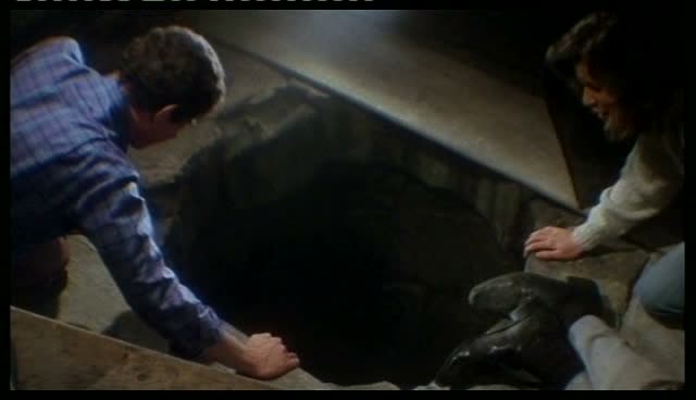 Se lancer dans le métrage n’est donc guère motivant, mais que ne ferait-on pas pour l’amour du cinéma, de l’art, et des sagas de cinéma de genre oubliées ? Amityville 3 (ou 3D) part même d’une bonne idée de départ, puisque dans la scène d’ouverture, John Baxter se rend dans la fameuse maison avec plusieurs spécialistes du paranormal. Le but ? Démanteler la supercherie. Comme si le réalisateur ne croyait pas lui-même à l’histoire ou au film, et comme pour faire taire un minimum les mauvaises langues croyant dur comme fer aux événements de la dite maison. Astucieux à défaut de convaincre pleinement, le reste du métrage change alors, puisque nous sommes bel et bien dans un film fantastique, où il faudra mettre des éléments paranormaux, des éléments se déplaçant seuls, des apparitions, et même un monstre final. La production semble sortir les grands moyens, mais ça c’est sur le papier uniquement, car Amityville 3, en plus de se trainer des personnages clichés et peu intéressants, ne se fait pas palpitant. Il faudra bien attendre une heure avant que l’histoire ne décolle, soit plus de la moitié de sa durée. Avant tout ça, quelques sons, une porte s’ouvrant seule, l’apparition d’un puits dans la cave de la maison, et une scène pompée sur le premier film, à base de… mouches ! Originalité quand tu nous tiens. Peu emballante, la première heure se fait pourtant la plus correcte, puisque finalement, les effets spéciaux ne sont pas encore à l’écran, et Meg Ryan, bien que dans un second rôle, est charmante comme tout. On ne pourra pas en dire autant de ses somptueux dialogues que l’équipe lui font dire.