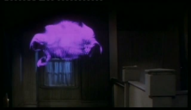 « Tu sais que l’on peut baiser avec un revenant ? C’est peut-être pour ça que ton père l’a acheté ! » Ça vole haut ! Chiant comme la mort, pas intéressant, mais regardable dirons nous. C’est dans sa deuxième partie que l’ensemble se gâte et que Amityville 3 devient le film à la réputation peu flatteuse, pillant un peu partout, rajoutant des incrustations bien dégueulasses, des monstres. On se retrouve avec des enquêteurs sur le paranormal qui vont placer des caméras et autres dans la maison (Poltergeist de Tobe Hooper non ?) afin de prouver ou non les phénomènes étranges qui s’y produisent. Franchement, depuis le temps, et avec tous les éléments des premiers films, les témoignages de la famille du premier film et tout ça, ils se posent encore des questions ? Le point de non retour est pourtant atteint l’instant d’après, lors de l’apparition d’incrustations lumineuses baveuses dans l’image et d’un monstre bien raté comme il faut digne d’un film de série Z. Le pire, c’est que personne au moment du tournage n’a eu l’air d’avoir honte ou de se poser des questions, filmant la bête frontalement. Seule consolation ? La destruction de la maison dans la scène finale peut-être. Et la 3D dans tout ça ? Simple, ratée et inutile comme dans les autres films de genre tournés avec ce procédé cette année là ! Pire, à l’époque de sa sortie, l’image paraissait floue et donnait la migraine aux spectateurs. Pas étonnant que l’on entendit plus parler de la saga jusqu’en 1989 avec le téléfilm Amityville 4, retrouvant le scénariste du premier film (qui réalise également) et adapté du livre du même nom !