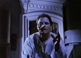 Voir par moment insupportable. Que l’on regarde le film en version originale ou avec son doublage français (oui, je me devais de comparer), c’est tout aussi nul. Les acteurs sont à côté de la plaque, et il faut dire que les dialogues n’aident pas tant ils sont pathétiques. Le rythme ? Aucun, on attend cinq plombes avant qu’il se passe quelque chose. Et l’aspect horrifique ? N’en demandons pas trop, Amityville 5 est un téléfilm bas de gamme et fauché. Par contre quelque chose me fait dire que les producteurs adorent les chats, car après avoir entendu le chat miauler très souvent dans le quatrième opus, le chat est de retour ici, afin d’emmener un personnage dans la sombre cave. Enfin ça, c’est si le spectateur parvient à lutter contre l’insomnie. Que dire de plus tant il n’y a rien à dire. Citer quelques dialogues peut-être. Un homme et une femme, au lit, la femme sortant « d’ailleurs, tu n’as pas besoin d’une chaudière pour te réchauffer »… Non, Amityville 5, c’est le mal ! Et en plus d’être nul, ça n’a rien à voir avec la saga, un comble.