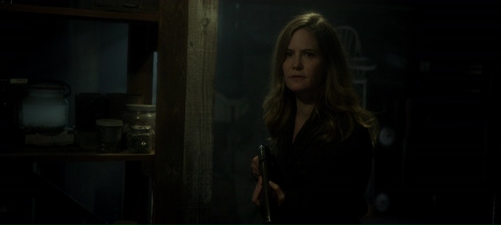 Bref, Amityville the Awakening, premier opus de la saga depuis le remake de 2005, jugé désastreux par beaucoup. Coupons court, le film n’est pas un remake. En fait on ne sait pas vraiment ce qu’il est. Il réutilise des scènes du premier et second film, mais accepte l’existence des autres films de la saga. Une nouvelle famille emménage de nos jours dans la fameuse maison. Bien entendu, ils ignorent tout de la malédiction et des événements. On a la mère célibataire (jouée par Jennifer Jason Leigh, convaincante), la fille un peu goth (mais qui évite le cliché de la fille à part au lycée car si tout le monde se moque, c’est à cause de sa nouvelle habitation), la petite fille toute mimi, et le frère plongé dans le coma depuis 2 ans. Si dans ces grandes lignes, le métrage n’invente rien de nouveau et place même les scènes tant attendues dans le métrage, l’ajout du personnage du frère est une bonne idée. Elle permet d’ajouter un minimum de profondeur aux personnages, notamment à la mère, qui pense à la santé de son fils quitte à mettre de côté ses deux autres enfants. Et puis on le sait, quand un démon rôde et qu’un personnage ne peut pas bouger, le stress peut venir facilement, comme dans Insidious 3 et son personnage avec la jambe dans le plâtre. Mais passé ces quelques bonnes idées et ajouts, ce nouvel opus de la bien trop longue saga ne fait que reprendre tous les tics de cette dite saga. Oui, on aura l’attaque des mouches, la fameuse salle cachée au sous-sol sous l’escalier, la possession démoniaque d’un personnage faible et qui va vouloir tuer sa famille. On commence à la connaître l’histoire. Et c’est au final le principal défaut de ce nouvel opus, le manque de surprises.