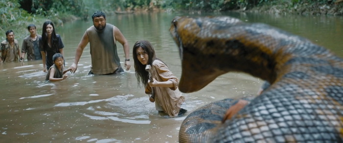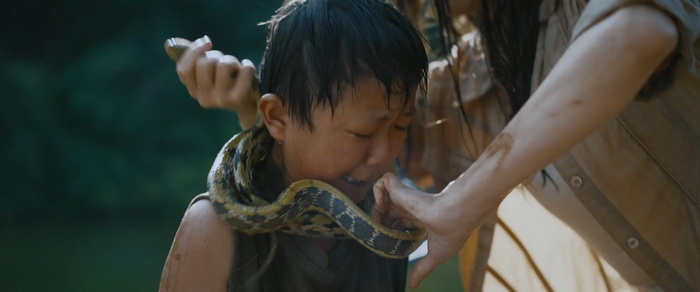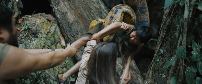 Leur mise en scène est d’ailleurs soignée. Ils ont parfaitement su mettre en valeur les paysages thaïlandais, ils arrivent à instaurer une certaine tension lorsque le serpent est prêt à attaquer, mais surtout, la qualité des effets spéciaux pour ce genre de production à budget réduit pour plateforme de SVOD sont réellement réussis. Mais par-dessus tout, le film est généreux en action et le (les) serpent(s) sont souvent présent à l’écran. Certes, certains mouvements défient parfois les lois de la physique, mais de nombreuses séquences sont très tendues et vraiment bien exécutées comme par exemple la longue attaque du bateau et sa partie de cache-cache. Il y a également une scène de rêve très bien exécutée et réellement, Anaconda sort du lot des nombreux films animaliers que iQiYi et autres Youku proposent sur leur plateforme. Alors nous ne sommes pas ici dans un chef d’œuvre du 7ème Art, et rien que la lecture du pitch peut nous en assurer, mais les frères Xiang ont parfaitement compris ce que les gens attendent d’un film du genre et ils donnent au spectateur un produit carré, bien fichu et qui en 1h24 rempli parfaitement le cahier des charges, ne s’arrête presque jamais et le film ose même quelques scènes un peu farfelues, sans jamais tomber dans le nanar comme le faisait parfois l’original. Alors oui, il n’y a rien de nouveau dans cette version chinoise d’Anaconda et entre la saga originale, les remakes, mais aussi tous les films animaliers qui ont vu le jour entre The Asylum et les plateformes de SVOD chinoises, tout a déjà été vu plusieurs fois. Mais c’est ici diablement efficace et même si tout est loin d’être parfait, on passe un vrai bon moment de divertissement, certes bas du front (en même temps, avec un anaconda géant…) mais duquel on ne sort pas avec cette impression d’avoir perdu son temps comme avec le remake américain…