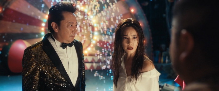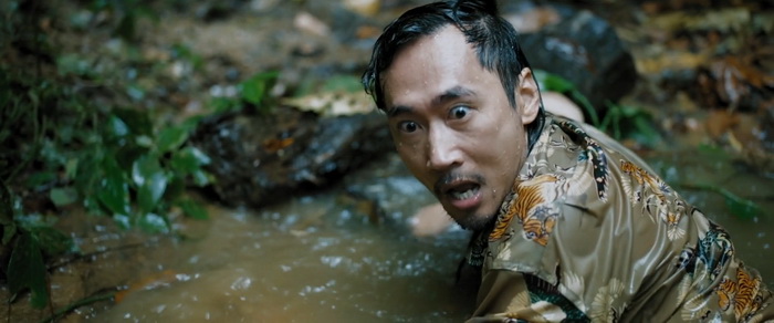 Cette cuvée chinoise d’Anaconda reprend à quelque chose près la même trame si ce n’est que le petit groupe qui se retrouve sur le bateau est une troupe de cirque et qui, suite au retour de l’un des leurs, se lance dans un voyage pour rejoindre la Thaïlande afin de se produire là-bas. Bien entendu, tout ne va pas se passer comme prévu et lorsqu’un nouveau passager un peu mystérieux rejoint leur embarcation, le destin va changer. Là où le remake de 2025 changeait pas mal de choses de l’original pour en faire un film méta, cette version chinoise décide de rester assez fidèle jusque dans les personnages qui sont, pour certains, assez similaires. L’acteur HK Terence Yin (Metade Fumaca, New Police Story) reprend le rôle de Jon Voight et lui aussi est tout en exagération même si clairement moins que Voight qui frisait presque le cartoonesque. On est d’ailleurs content de revoir d’autres acteurs hongkongais comme Ken Lok (Black Mask, Mongkok Story) qui interprète un simili prêtre taoïste et l’immédiatement reconnaissable Paul Chun (L’Enfer des Armes, Justice My foot) dans le rôle du capitaine du bateau. Le casting offre d’ailleurs des performances solides et l’idée d’injecter des nouveaux personnages, comme le jeune enfant, permet d’amener un peu de variété. Le film est court, les personnages peu développés, mais suffisamment pour qu’on s’attache à eux, en tout cas bien plus que dans le film original et surtout l’horrible remake américain où ils sont à claquer. Pour le coup, on craint un peu plus pour eux et les scènes de mort ont un peu plus d’impact. Bien entendu, les deux réalisateurs ne cherchent pas à créer ici un drame subtil et nous sommes avant tout dans un film de monstre, mais on sent réellement que les frères Xiang ont voulu faire quelque chose qui tient vraiment la route.