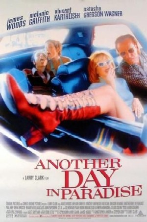 Larry Clark s’était fait remarqué en 1995 en signant Kids, écrit par Harmony Korine (futur réalisateur de Spring Breakers). Il revient en 1998 avec Another Day in Paradise, qu’il produit, adapté du roman de Eddie Little. Another Day in Paradise est un film noir, de par le genre qu’il aborde bien entendu, mais aussi son ton, noir et désespéré. Larry Clark nous invite à suivre le jeune voleur Bobbie (Vincent Kartheiser) et sa copine Rosie (Natasha Gregson Wagner), couple un brin fou et drogué, qui va être pris en main par Mel (James Woods, toujours excellent) et sa copine Sid (Melanie Griffith), couple tout aussi fou. Et c’est parti pour 1h40 de road movie, au départ assez lent, mais qui passe ensuite la seconde vitesse, pour nous plonger dans le quotidien de ces personnages et leur lente descente aux enfers captée par la caméra de Larry Clark. Comme toute descente aux enfers, Larry Clark n’accumule pas les rebondissements, mais prend son temps, pour bien nous présenter ces personnages un brin paumés, et ainsi rendre chaque élément perturbateur plus fort, plus surprenant, et plus sombre surtout. Comme pour laisser aux personnages assez de temps pour espérer s’en sortir, avant de leur retirer tout espoir au dernier moment.