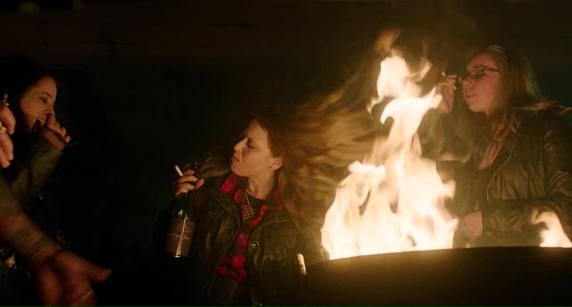 Premier bon point pour le film, le réalisateur parvient par je ne sais quel miracle à nous intéresser à l’existence de Lou, à sa vie pourtant si vide de sens. Oui, une fille qui passe ses journées et soirées à se droguer, à boire de l’alcool, à être grossière et à s’envoyer en l’air. Et pourtant, on s’intéresse à elle. Chapeau monsieur Perez. Le souci, c’est que ce qu’il gagne avec son personne principal, il le perd ailleurs. Car Antibirth, bien que grotesque, halluciné, parfois dérangeant, sale, ne tient pas toutes ses promesses, comme tiraillé entre des moments surréalistes qui devaient tenir à cœur au réalisateur, et d’autres moments beaucoup plus terre à terre, devant servir la narration du métrage, se déroulant dans une ville paumée, grise, enneigée, sans vie. Le métrage joue toujours sur ce contraste, entre les visions de Lou, colorées, partant dans tous les sens, nous faisant douter de ce que l’on voit (l’équipe elle-même savait-elle ce qu’elle faisait ?) et les moments du quotidien, ternes, un brin tristounet, où la vie de Lou semble pourtant suivre son cour.