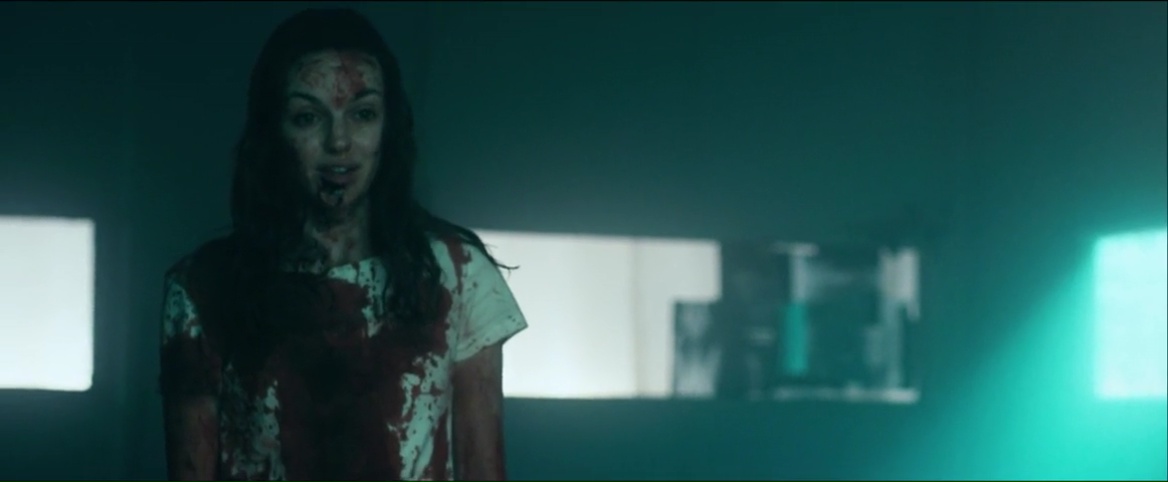 Le monde est toujours dévasté, les connectés sont là, et rien ne va plus. Le site Red Room prépare une mise à jour, ce qui fait peur aux survivants. Nul ne sait ce qu’il se passera une fois que la mise à jour atteindra les 100%. D’un autre côté, les survivants qui n’ont pas eu de soucis craignent les « defects », ceux qui comme Sam, ont retirés à la barbare la tumeur qui poussait. Car oui, ils ont toujours en eux le virus, il est juste dormant. Sam elle recherche son enfant, voyageant dans une vieille voiture, dormant dans le coffre, cherchant la moindre piste, évitant humains comme connectés. Antisocial 2 étend son univers, ne se cloisonne plus dans une maison universitaire, il s’ouvre au monde. Du moins durant sa première partie, puisque pour mettre en image un monde dévasté, il faut du budget, et Antisocial 2 reste une série B modeste. Sa première partie, avec la recherche de Sam, sa rencontre avec une autre survivante qui comme elle a eu la chirurgie, surnommée Bean, fonctionne parfaitement. On retrouve dans un sens malgré l’aspect plus ouvert l’ambiance du premier métrage. Il faut dire que la même équipe est derrière le projet, devant et derrière la caméra. Et surtout, entre temps, Cody Calahan, le réalisateur, a fait des progrès. Quand le rythme s’emballe, il filme le tout avec plus de distance et moins de shaky cam, ce qui rend l’action beaucoup plus lisible. Le reste est comme toujours bien éclairé, Michelle Mylett s’en sort toujours bien, c’est du boulot professionnel. Mais rapidement, le film renferme de nouveau son intrigue, dans un hôpital avec un groupe de survivants.