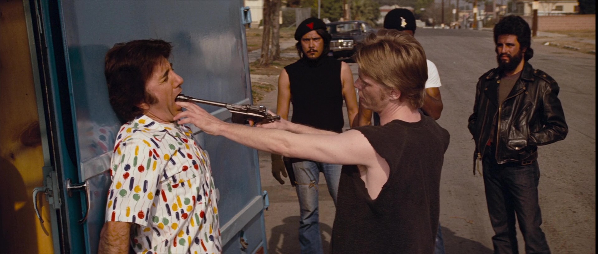 Surtout si on le compare à Ghosts of Mars, quasi remake d’Assaut transposé sur Mars et best of de la carrière de Big John, on se rend compte qu’Assaut est bel et bien un très grand film. De l’utilisation du scope à la magnifique photographie de Douglas Knapp, de la musique entêtante de Big John à la création de personnages forts, tout dans Assaut respire l’univers de Carpenter. Chaque plan semble pensé, et surtout bien pensé, chaque dialogue semble être un moment qui claque, jusqu’aux blagues récurrentes du métrage autour du personnage de Napoléon Wilson, prisonnier dont on ignore tout, si ce n’est qu’il est condamné à mort. Carpenter instaure dés le départ le climat du film. Los Angeles est en proie aux gangs, la violence est présente à chaque coin de rue, la police ne peut rien faire, les gangs sont de plus en plus radicaux. L’heure s’affiche constamment à l’écran, donnant un aspect réaliste et documentaire au métrage, tandis que nos personnages vont vers leur destin. Wilson donc, prisonnier dans un convoi pour un transfert, Bishop le lieutenant qui doit surveiller un commissariat, et un père de famille qui va croiser avec sa fille un gang et en payer le prix. Carpenter n’a pas son pareil pour poser une ambiance, par sa mise en scène, son montage et sa musique, et Assaut n’a pas à rougir face aux travaux suivants du metteur en scène. Bien que lente, toute la première partie du métrage se fait incroyablement prenante et intéressante, bien que l’on se doute fortement de ce qui attend nos héros improbables.