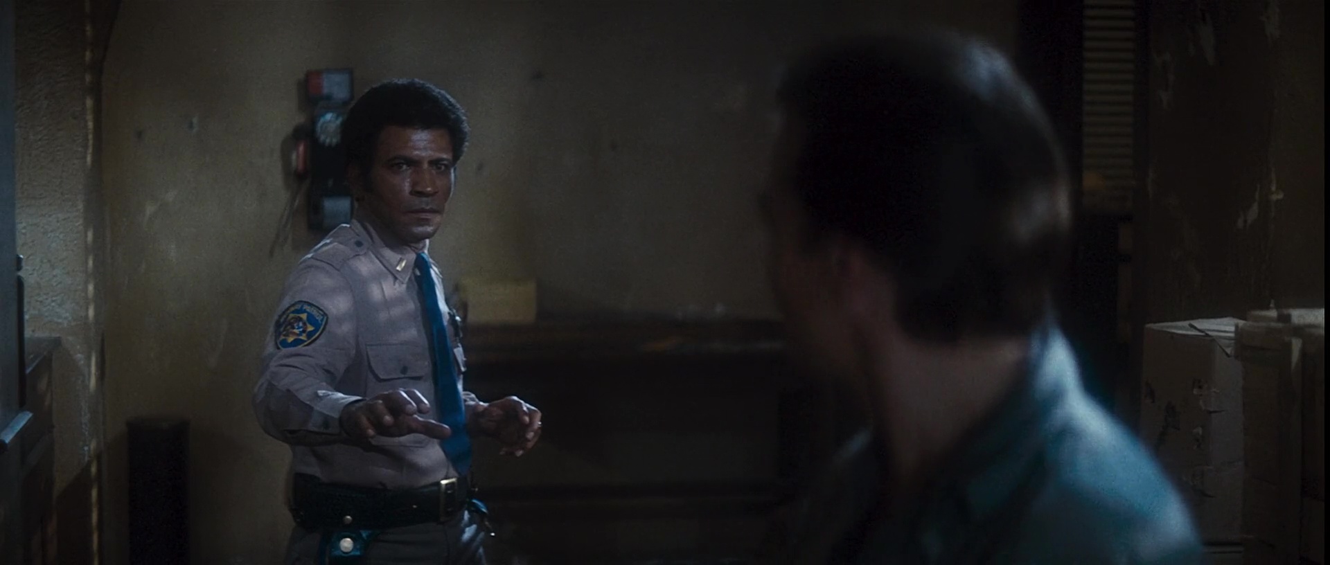 Car oui, Napoléon Wilson, prisonnier condamné à la chaise électrique, est le héros typique de l’œuvre de Carpenter, le bad guy dont on ignore beaucoup de choses mais qui est toujours prêt à se battre pour une cause qu’il jugera juste, même si cela l’amène à faire équipe avec ses ennemis. Comme Snake Plissken des années plus tard qui ira sauver le président contre son gré, ou Desolation Williams qui s’alliera à la police pour fuir Mars. On sait qu’il est mauvais, mais au final, il n’a pas mauvais fond, et Carpenter fait tout pour le rendre appréciable, et par moment même amusant. Darwin Joston (que l’on reverra dans Fog) livre une excellente prestation, entouré par Austin Stoker et Laurie Zimmer. Mais au-delà de ses qualités d’écriture, Assaut bénéficie également d’une vraie tension et d’idées intéressantes dans la façon de filmer les réels méchants du métrage, c’est-à-dire les gangs, et donc, leur assaut envers le commissariat. Carpenter comme il le fera encore par la suite décide de ne pas les humaniser, ne leur donne jamais la parole (un peu comme les clochards dans Prince des Ténèbres), les filme de manière distante telles des ombres menaçantes. Le cinéaste ne cachera pas son inspiration pour les assaillants : La Nuit des Morts-Vivants de George A. Romero. Et ça fonctionne du tonnerre. Erreur que fera le remake de 2005, en expliquant tout, en retirant tout mystère, en humanisant chaque personnage. Assaut, c’est du polar urbain violent, sec, sans concession. Certes ça a sans doute un peu vieillit (1976) mais ça garde malgré tout toute sa force 40 ans après ! La naissance d’un cinéaste !