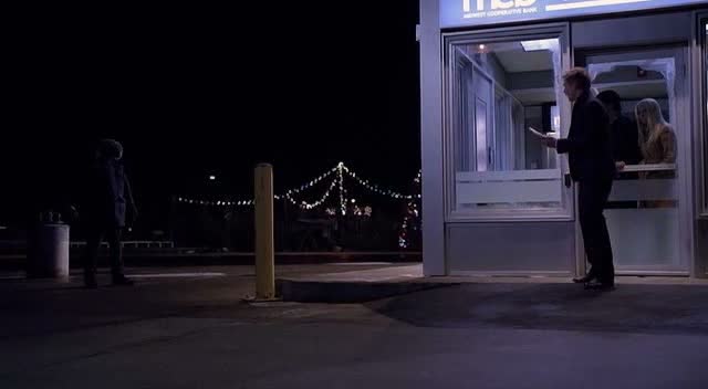 Quelle idée formidable ! Bien entendu, à peine sur place, alors qu’ils s’apprêtent à sortir et à reprendre la voiture, un homme se tient là. Vêtu d’un énorme manteau, l’air menaçant, il leur bloque le passage, et va se faire un malin plaisir de les menacer et de tuer quiconque s’approchera. Son but ? On ne sait pas ! Porte-t-il un caleçon ou un boxer ? Est-il fumeur ? A-t-il une assurance vie en cas de gelures dues au froid ? On ne saura pas non plus ! Ah non, on me dit que je m’égare du sujet principal qu’est le film là… A partir de là donc, le film se transforme en huit clos, où le danger est partout : le froid, l’isolement, le tueur à l’extérieur. Et bien entendu, les personnages qui vont s’en prendre les uns aux autres, se renvoyer la balle, mettre la faute sur tel ou tel personnage. Rien de bien original. Le lieu de l’action aurait pu apporter quelque chose d’innovant pourtant. Il faut dire qu’encore une fois, après 247°F et Altitude, les personnages ne font pas toujours preuve de la plus grande intelligence, et cela en devient parfois énervant, tant il leur faut de trèèèèèès longues minutes pour avoir telle ou telle idée, comme mettre le feu à une poubelle pour déclencher l’alarme ou autre, alors que tout le monde dans un cas pareil aurait eu l’idée à peine quelques minutes après la mise en situation. C’est dommage, car malgré tout, ATM s’avère plutôt bien rythmé et plutôt bien filmé. Ses atouts sont purement visuels, et le réalisateur n’est pas franchement un manchot, il sait poser son ambiance. Les différents paramètres tels que le froid ou autres sont plutôt bien gérés tout le long du métrage, et par moment, une tension plutôt sympathique parvient même à s’inviter au programme.