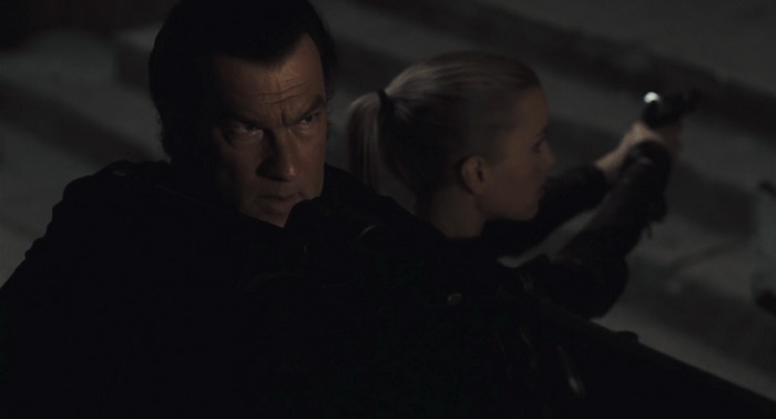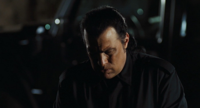 Comme dans les films précédents de Seagal, le scénario devient rapidement très brouillon, voire incompréhensible, la faute sans doute à un film qui n’a au final rien à voir avec ce qu’il devait être au départ, qui a dû subir de nombreuses coupes, des reshoots, et même du redoublage comme expliqué plus haut. Mais c’est sans parler de nombreuses incohérences d’une histoire se situant en partie en France, surtout pour le public français. Déjà que les américains sont nuls en géographie de leur pays, imaginez ce qu’il en est pour la géographie d’un pays à l’autre bout du monde pour eux. Du coup, ils collent Bordeaux à côté de Bastia et croient qu’un stockshot de la Tour Eiffel et des plaques d’immatriculation française sera suffisant pour le subterfuge. Voilà voilà… Rien ne semble poser problème à personne, ni aux acteurs, ni à l’équipe technique, avec des méchants qui ont des motivations qui n’ont aucun sens, voire qui changent en cours de route, ou encore un Seagal qui ne semble pas vouloir se fixer sur une équipe en particulier à former. Le public n’a d’autre choix que de s’en balancer complètement lui aussi sous peine de voir son cerveau dégouliner par ses oreilles. Seagal retombe à nouveau dans ses travers et livre ici le strict minimum, aussi bien en termes de jeu d’acteur que lors des scènes d’action. Parfois, il est présent à l’écran mais il n’a aucune ligne de dialogue. On a sincèrement l’impression qu’il en a juste plus rien à foutre et qu’il est juste là pour encaisser son chèque. Peut-être qu’à force de jouer encore et toujours le même personnage interchangeable d’agent (ou d’ancien agent) de la CIA / FBI / choisissez votre sigle, il commence à ressentir quelque lassitude ? Remarque, c’est peut-être parce qu’il s’ennuie dans les tournages qu’il réfléchit à comment faire chier les autres acteurs, le réalisateur, le producteur, … Parce que oui, si vous lisez mes chroniques de mon marathon Seagal, je parle souvent des problèmes de productions de ses films de cette période. Eh bien c’est apparemment de nouveau le cas ici puisqu’il a pris la tête au metteur en scène parce que ce dernier ne croyait pas qu’il pouvait tuer quelqu’un à mains nues, parce qu’ils avaient une vision différente de comment le film devait être, pour divers caprices qui commençaient à caractériser le Seagal de cette époque.