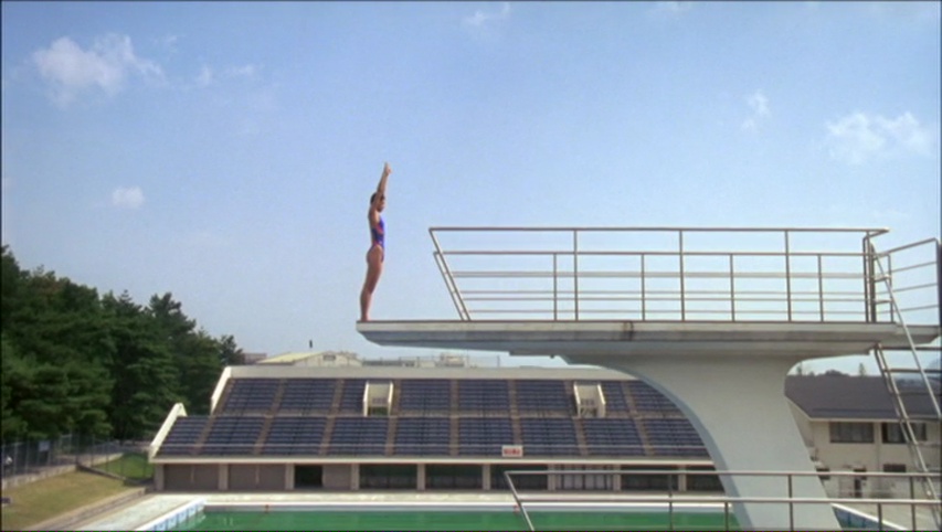 Ishii Sogo, voilà bien un réalisateur intéressant dont on ne parle pas assez. Moins vendeur qu’un Miike ou une énième adaptation de manga, parfois moins fou qu’un Tsukamoto, Ishii a une carrière pour le moins étrange, qui fonctionne par cycle. D’un côté, des films fous, bruyants, rapides, comme Burst City ou surtout Electric Dragon 80 000V. Mais dans les années 90, Ishii change son fusil d’épaule et le temps de plusieurs films, pose sa caméra, joue sur l’ambiance et la lenteur des récits. Cela avait donné en 1994 l’excellent Angel Dust, sorte de cauchemar éveillé qui colle à la peau. À peine un an plus tard, il poursuit dans cette thématique mais en livrant l’exact opposé avec ce August in the Water. Angel Dust était un cauchemar, August in the Water sera un rêve éveillé. Un film plus doux, plus onirique, moins claustrophobe et opaque. L’autre côté d’une même pièce. Éclairage souvent lumineux, plans larges mettant en valeur les décors ou tout simplement la nature, plans fixes qui osent s’éterniser pour ne pas bousculer le rythme du métrage et trahir son ADN, August in the Water est un film onirique. Qui pourtant a bien du mal à commencer, malgré de magnifiques trouvailles visuelles. Car le métrage prend son temps, pour nous dépeindre ses personnages, le lieu de l’action avec la ville de Fukuoka, filmer sa nature, et mélanger les genres. August in the Water commence presque comme un mélange entre une romance adolescente et un documentaire sur le plongeon. Nous suivons les entrainements d’Izumi (magnifiquement filmés tout en travelling), l’histoire d’amour innocente qui va naître, et tout à coup, c’est le drame, le film bascule, change de genre, tout en gardant son côté naturel dans sa mise en scène, qui n’en fait jamais trop.