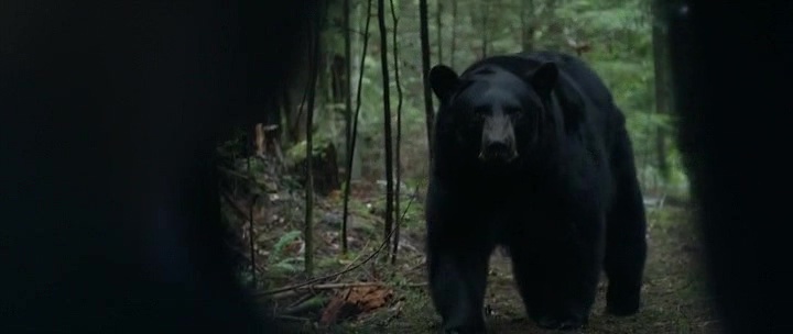 Alors certes je comprend, cet artifice sert à mettre quelques tensions au sein du couple, mais était-ce vraiment utile ? Vu que de toute façon, ils se retrouvent rapidement perdus, désorientés, sans nourriture, sans eau ? N’est-ce pas déjà assez pour faire monter la tension ? Et l’ours de la pochette dans tout ça ? Il tarde à montrer le bout de son nez, en réalité, il faut attendre quasi 50 minutes pour sa première apparition, furtive. Une apparition qui a de la gueule d’ailleurs, qui fait monter la sauce, mais qui m’aurait également moins énervé si les personnages auraient réagis. Je veux bien que l’ours débarque quand les personnages dorment, mais… avec le bruit qu’il fait, avec ses personnages qui sont sur les nerfs, je ne sais pas, ça réveillerait non ? Heureusement, dés lors, le film se transforme véritablement en survival, et nous offre quelques bons moments, comme une attaque assez violente, de beaux plans de forêt… Mais encore une fois, dommage que les personnages se bornent à être aussi stupides, car ça me sort souvent du film. Oui, la scène de la bague, ou l’incapacité de l’héroïne à utiliser une fusée de détresse au seul moment utile, ça m’a énervé. Backcountry oui a un peu raté la coche pour moi. Peut-être étais-je dans un mauvais jour où je ne sais pas, mais ses incohérences m’ont sauté à la gueule…