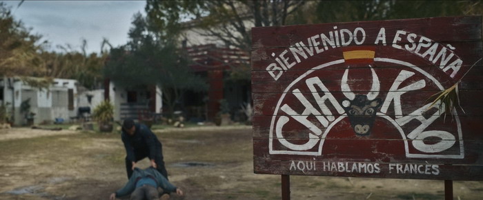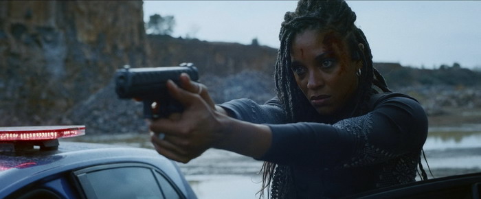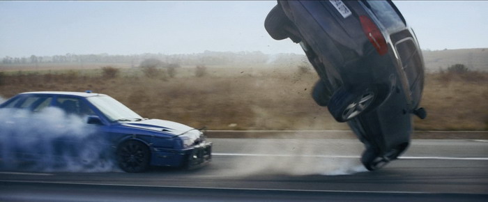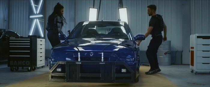 Une fois de plus, Alban Lenoir va s’impliquer à fond dans l’action, réalisant la plupart de ses cascades, aussi bien en termes de bastons pieds / poings que de courses poursuites motorisées. Stéfi Celma tire également son épingle du jeu et même si son personnage est parfois un peu trop masculinisé, comme s’il était de bon temps de ne pas sexualiser son personnage principal féminin, la bougresse se bat comme une tigresse, s’impliquant à fond dès qu’il faut faire sauter des chicots ou faire des queues de poissons. Balle Perdue 2 atteint son rythme de croisière au bout d’une demi-heure de film et, à partir de là, on va avoir droit à quasiment une heure d’action non-stop. Et bordel quelle efficacité à partir de là. Que ça fait du bien de presque sentir l’odeur du pneu qui crisse et de la tôle froissée. Les scènes d’action, toujours très réalistes, toujours avec cette envie de réduire au strict minimum l’utilisation de CGI, sont tout bonnement impressionnantes. Mais là où le premier film était assez timide en casse, ce deuxième film a un budget destruction de bagnoles assez impressionnant. L’action est ici solide, tout comme sa mise en scène, mais aussi parfois spectaculaire comme lors de cette course poursuite où les voitures sont littéralement éjectées dans les airs. Le déluge d’action se poursuit frénétiquement jusqu’au générique de fin et deux scènes assez monstrueuses vont faire frénétiquement sautiller sur son canapé l’amateur de série B d’action à l’ancienne. La première, c’est une longue bagarre dans le commissariat entre Alban Lenoir et des flics locaux (et certains ripoux), qui lorgne clairement du côté de ce qui se faisait à Hong Kong dans les années 2000, période Donnie Yen. La deuxième est la très longue course-poursuite qui va suivre, parfois complètement folle. La quasi-absence de CGI donne à ces scènes d’action, surtout celles motorisées, un côté absolument jouissif et jamais un crash entre deux voitures en CGI n’aura la puissance cinématographique d’une vraie bagnole qui en cartouche une autre en prenant soin de valdinguer dans les airs pendants plusieurs secondes. Alors c’est certains, Balle Perdue 2 est un film qui n’invente pas la poudre, mais en même temps ce n’est pas ce qu’on lui demande. Par contre, en termes d’efficacité pour qui aime un tant soit peu le cinéma d’action en practical, c’est souvent un pur régal.
