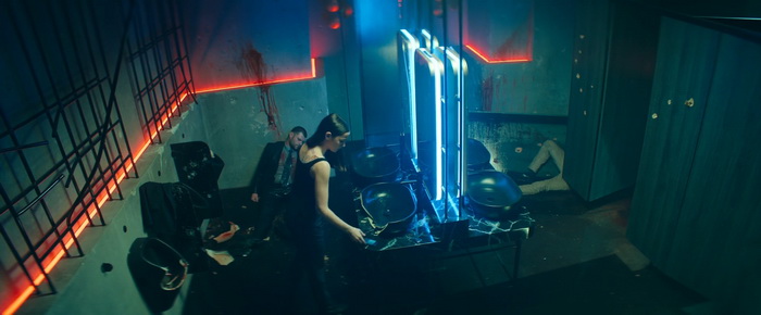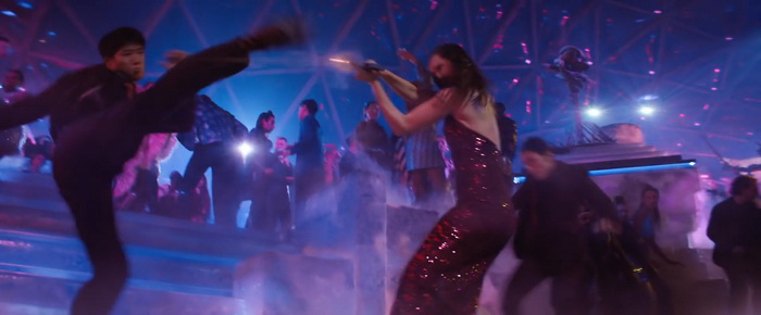 Le gros problème de Ballerina, c’est son scénario. Outre le fait qu’il soit beaucoup trop mince, il suit des rails très balisés, sans aucune surprise, alignant des clichés plus que de raison. On sent parfois que le film aimerait aller au-delà de la simple intrigue de vengeance vue et revue, avec par exemple cette réflexion sur le corps et la discipline lors des scènes sur la danse classique, mais on a au final l’impression que c’est juste là pour remplir un premier acte parfois un peu longuet et ce n’est jamais exploité correctement, avec des répliques qui manquent clairement de relief. Autre problématique de Ballerina, ce sont ses personnages secondaires qui sont soit sous exploités, sous sans aucune profondeur, au point qu’on ressent que certains ont été rajoutés dans les reshoots en post-prod car ils ne s’imbriquent pas totalement dans l’intrigue (le personnage de Norman Reedus par exemple). Heureusement, tout cela est contrebalancé par deux choses qui viennent clairement sauver le film. La première, c’est la mise en scène et en particulier le visuel du film, souvent très coloré, à grands renfort de néons, qui aide grandement l’ambiance sombre du film, avec des lumières contrastées, avec des plans de pluie ou de décors enneigés du plus bel effet, bien que semblant parfois un peu artificiels. L’autre gros point fort du film, ce sont ses scènes d’action, très nombreuses passées le premier acte. L’ensemble fait un peu moins chorégraphie de danse que les combats de Chad Stahelski sur la saga John Wick et c’est tant mieux, avec des affrontements plus viscéraux, violents, un montage parfois plus abrupt, et constamment une envie de proposer un spectacle jouissif au spectateur, aussi bien au niveau des combats martiaux que des gunfights qui ont vraiment belle allure. Certaines idées sont extrêmement funs, avec une excellente utilisation des différents éléments du décor qui ajoute énormément de punch à l’ensemble. Et puis il y a ce long passage au lance-flamme… j’adore les lance-flammes… visuellement impressionnant, qui donne au film une dimension plus cartoon tant lors du passage Feu vs Eau on a carrément l’impression d’être devant Dragon Ball Z où le kamehameha de Son Goku rentre en impact avec le final flash de Vegeta. Bref, avec Ballerina, il ne faut pas s’attendre à un grand film, ni même à un scénario très intéressant, mais en termes d’action et de fun, il fait amplement le job pour qui aime les films où ça castagne.