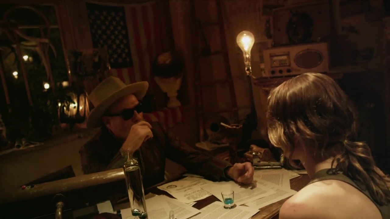 Et ma foi, ça fonctionne. Du haut de ses 1h27, le métrage parvient à véritablement poser une ambiance lourde, et surtout, s’affranchit parfois des limites du support en passant en vrai film, non filmé par les acteurs. Alors certes, on sent que le budget est très limité, l’image est parfois assez granuleuse et sombre, si bien qu’on se demande où commence et où finit le found footage, mais dans l’ensemble, ça fonctionne plutôt bien. L’image est un peu crade, mais on pourra dire que cela renforce l’ambiance. Tout n’est bien entendu pas parfait non plus, puisqu’à force d’intégrer divers éléments dans son intrigue, beaucoup d’éléments ne sont que survolés. Entre la drogue, les vidéos d’archives, cet écrivain drogué, les hallucinations, les monstres (heureusement peu montrés), les jumpscares, ces messages étranges envoyés par radio, le métrage intègre beaucoup d’éléments dans son intrigue et n’a pas le temps de tout développer comme il le devrait sur sa durée. Mais l’intention est tout à fait louable, et au moins, Banshee Chapter tente clairement de nous livrer un métrage du genre qui ne ressemble pas aux autres. Mieux, il ne filera pas la migraine cette fois, sans doute grâce à l’alternance de vidéos retrouvées, du vrai film, avec quelques dialogues posés et filmés simplement. Et surtout, oui encore une fois, il tente de poser une ambiance lourde, plutôt que d’accumuler tout simplement les jumpscares insérés au sein de moments chiants et mal foutus. Pas mal donc.