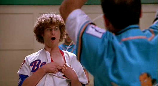 Réalisé par un David Zucker au creux de la vague, il n’avait rien tourné depuis Y a-t-il un flic pour sauver le président ?, Baseketball ne serait pas ce qu’il est sans Trey Parker et Matt Stone, pour ce qui est dans leur filmographie considéré comme un film qui n’est ni réalisé, ni écrit par le duo, tout du moins officiellement. Car si l’idée et le scénario de base sont bien de Zucker, ce dernier n’était pas destiné au duo, qui a accepté de tourner pour la simple raison qu’il ne savait pas si South Park allait être reconduit ou non. Parker et Stone vont donc se réapproprier le script et le réécrire pour donner naissance aux protagonistes, et même convaincre Zucker d’en créer un troisième. Une bonne chose, car injecter un peu de délire made in Stone/Parker permet à Baseketball de dépasser le statut de comédie où deux potes tiennent un concept en or, qui va prendre des proportions énormes, avant de se faire déposséder de leur bébé par un véreux qui y voit du pognon à ce faire. Oui Wayne’s World n’est pas loin, entre autres comédies qui fonctionnent sur le même schéma.