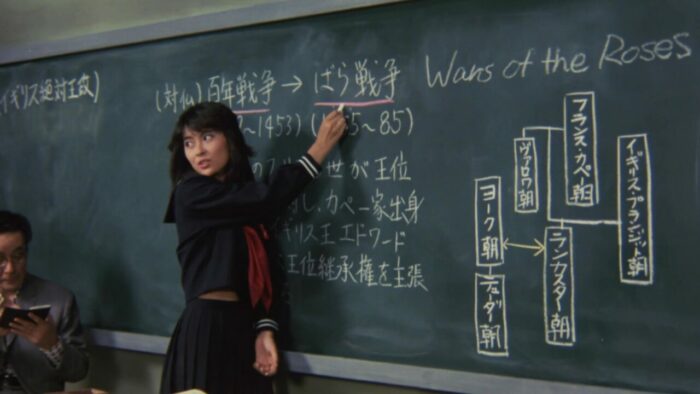 Au Japon, à l’époque, dans les années 70 et 80, lorsqu’un manga était adapté, les studios ne perdaient pas de temps à mettre en place une suite. Et surtout, ils ne se limitaient pas à une ou deux suites comme aujourd’hui avec les adaptations de Gantz, Death Note, Parasyte et tant d’autres, souvent en deux parties. Non, à l’époque, les suites étaient nombreuses, et souvent produites à la chaine. Il suffit de voir les Baby Cart au début des années 70. 6 films produits en deux ans. Et dans les années 80, avec Be-Bop High School dont l’intégralité des épisodes originaux furent tous réalisés par Nasu Hiroyuki, ce n’est pas moins de six épisodes qui sont réalisés entre 1985 et 1988. Après, c’est un vrai bordel, le manga continuant jusqu’au début des années2000, et la saga ayant droit à d’autres adaptations, pour le cinéma ou la télévision, dans les années 90, sans oublier la série animée au début des années 90, des téléfilms au début des années 2000 et j’en passe. Bref, il y a de quoi faire. Et après avoir découvert le sympathique premier opus, il était logique que je continue l’exploration de cette saga, surtout qu’ils ont plutôt bonne réputation, du moins les trois premiers opus, les trois suivants étant beaucoup moins bien notés. Est-ce que ce second opus qui reprend l’exacte formule du premier, l’exact casting jusqu’à certains seconds rôles comiques (Ishii Hiroyasu est parfois hilarant), et l’exacte équipe technique fonctionne toujours aussi bien ? Et bien oui. Par certains aspects, on pourrait même dire que ce second opus est supérieur à l’original, du moins scénaristiquement, puisque l’ensemble semble beaucoup plus cohérent, lié, là où la première demi-heure du premier film donnait l’impression de voir une succession de scénettes, une succession de pages de manga en réalité.