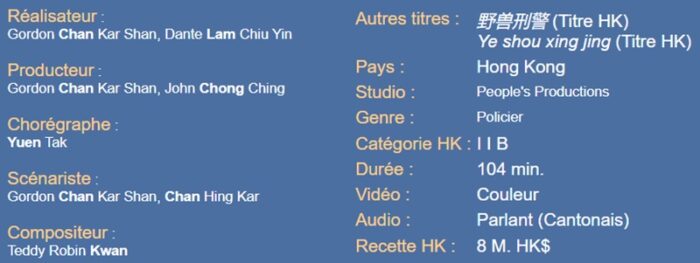 1998. La rétrocession est passée par là, le paysage cinématographique de Hong Kong se montre particulièrement fade et une nouvelle génération de cinéastes se dessine progressivement. Parmi ceux ayant pleinement émergé après 1997, il y a Dante Lam. Si entre temps, le réalisateur a creusé son chemin dans le polar hongkongais, au point d’en être une des figures majeures actuellement, rappelons qu’à sa sortie, Beast Cops n’est que sa deuxième réalisation. Épaulé par Gordon Chan qui visiblement a apporté sa touche (eh oui, Michael Wong et le S.D.U., c’est sa marque de fabrique!) les deux hommes apportent une bouffée d’air frais dans le paysage cinématographique de l’ancienne colonie en prenant à contre-pied toutes les idées que l’on se fait du polar made in HK.
