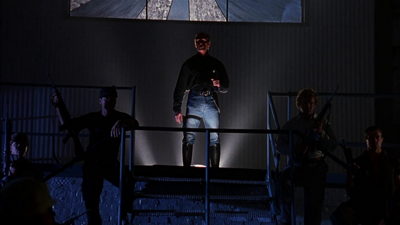 Avec Best of the Best 3, Phillip Rhee dénonce le racisme, et ça lui tient à cœur puisqu’il n’est question que de ça pendant une bonne partie du film. Phillip Rhee plante le décors dans une ville à la limite de la ségrégation raciale, commence son histoire par l’ assassinat d’ un pasteur qui s’ appelle Luther parce qu’il avait un rêve et fringue le méchant en confédéré pour montrer que les sudistes c’est des racistes. C’est un peu facile, c’est réglé avec des discours dignes du générique de Arnold et Willy, mais l’ intention est là et Phillip Rhee mériterai sa place en tant qu’ ambassadeur de l’ ONU. Il arrive tout le monde est raciste, il part plus personne n’ est raciste. C’est qu‘ en vérité, personne n’est vraiment raciste dans Best of the Best 3, on parlera plus d’ une population terrorisée dans un film qui alerte sur ces groupuscules néo nazies et le danger qu’ils représentent. Malgré tout ça amène un fond, mais les films de kickboxing à tendance sociale, ça a tendance à faire baisser le fightomètre, Best of the Best 3 n’échappe pas à la règle. Déjà, pour voir Phillip Rhee, il faudra patienter 20 minutes le temps qu’ il mette en place son histoire. Puis Tommy Lee arrive en ville, l’ occasion pour Phillip Rhee de se prendre un peu pour Stallone et de bien se mettre en valeur dans une succession de plans très pubs pour Levi’s. L’ action n’arrive pas pour autant car les 20 minutes d’ expositions qui ouvrent le métrage n’ont pas suffit pour présenter tout les personnages. Il y a la sœur de Tommy Lee, son mari qui est le shériff de la ville et qui fait si bien son travail que des néo nazies ont envahis les lieux et Dee Wallace Stone en mère de famille, elle fait ça si bien. Toutefois elle en chie un peu plus que dans E.T en tant que maman, ici son fils se fait enrôler chez les suprémacistes car il manquait juste le dernier personnage cliché de ce genre de film: celui qui est avec les racistes mais qui ne l’ est pas au fond de lui, et puis ça justifie le point de non retour du titre original en raccord avec le message délivré par le métrage.