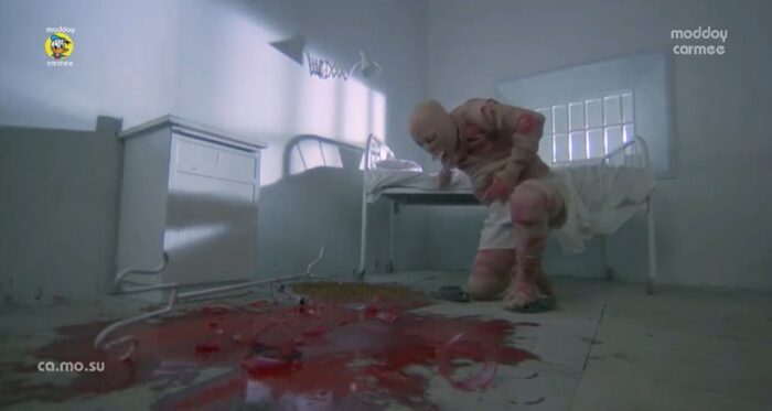 Autre tour de force du réalisateur, la possession progressive de Stephen qui voit en sa fille une menace. Hallucination, réalité… qu’importe, le spectateur la découvrira horrifié se régalant de viande crue et saignante en pleine nuit, et c’est ce qui compte ! Kuei Chih Hung était-il en train d’inventer la figure de la jeune fille possédée aux cheveux longs et noirs, comme on la trouvera trop souvent, une vingtaine d’années plus tard, dans les cinémas fantastiques japonais et coréens ?