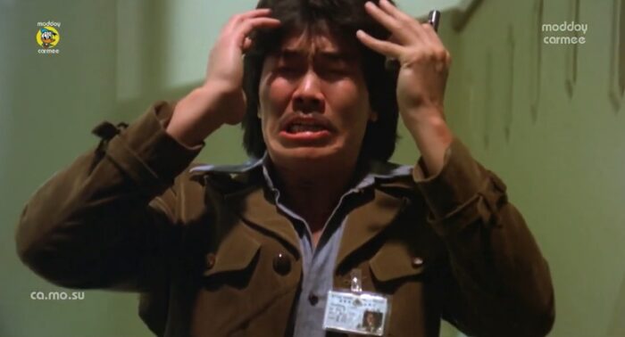 Comme dans Blue Velvet cinq ans plus tard, Bewitched nous propose, dans un de ses premiers plans, de suivre une file de fourmis affairée qui nous mène, non pas à une oreille, mais à un cadavre de fillette en putréfaction. Le corps est découvert par une charmante famille hongkongaise en plein pique-nique. Nous apprenons alors que l’assassin n’est autre que son propre père, Stephen Lam Wai (Ngaai Fei), et qu’il a tué sa fille en lui plantant un clou de vingt centimètres dans le crâne (ce qui nous vaut une « belle » scène à l’institut médico-légal dès les premières minutes du film). L’homme est condamné à mort par pendaison bien qu’il clame son innocence lors de son procès : il aurait été envoûté suite à un voyage en Thaïlande. Avant que la sentence soit appliquée, il requiert une faveur au policier (Melvin Wong) qui l’a arrêté, Bobby Wong King Sun : que celui-ci se rende à Bangkok, retrouve ceux qui lui ont jeté un sort et le venge. Le policier reste circonspect mais devant la décrépitude surnaturelle de l’infanticide (une énorme touffe de poils lui pousse sur le thorax, des boutons apparaissent sur son visage, sa peau part en lambeaux…), il décide de se rendre en Thaïlande.