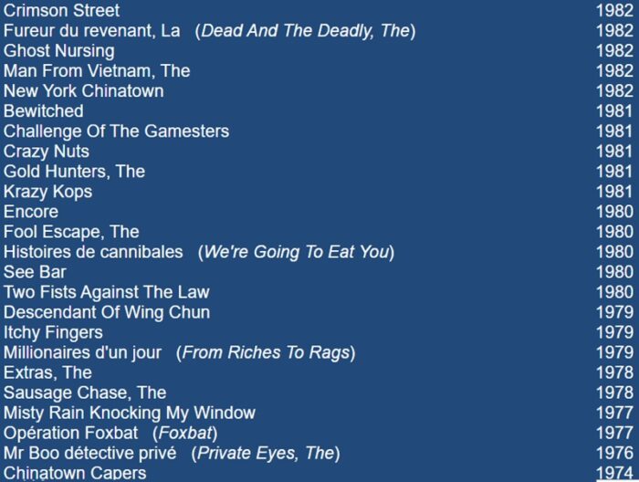 Pour ce qui est des films d’horreur, on s’accorde à lui reconnaître deux chef-d’œuvres : Bewitched, tourné en 1981, et Boxer’s Omen, en1983, sorte de relecture ou de suite au titre précédemment cité.