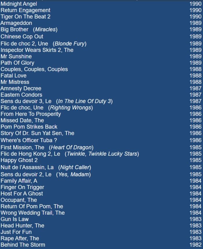 Pour ce qui est des films d’horreur, on s’accorde à lui reconnaître deux chef-d’œuvres : Bewitched, tourné en 1981, et Boxer’s Omen, en1983, sorte de relecture ou de suite au titre précédemment cité.