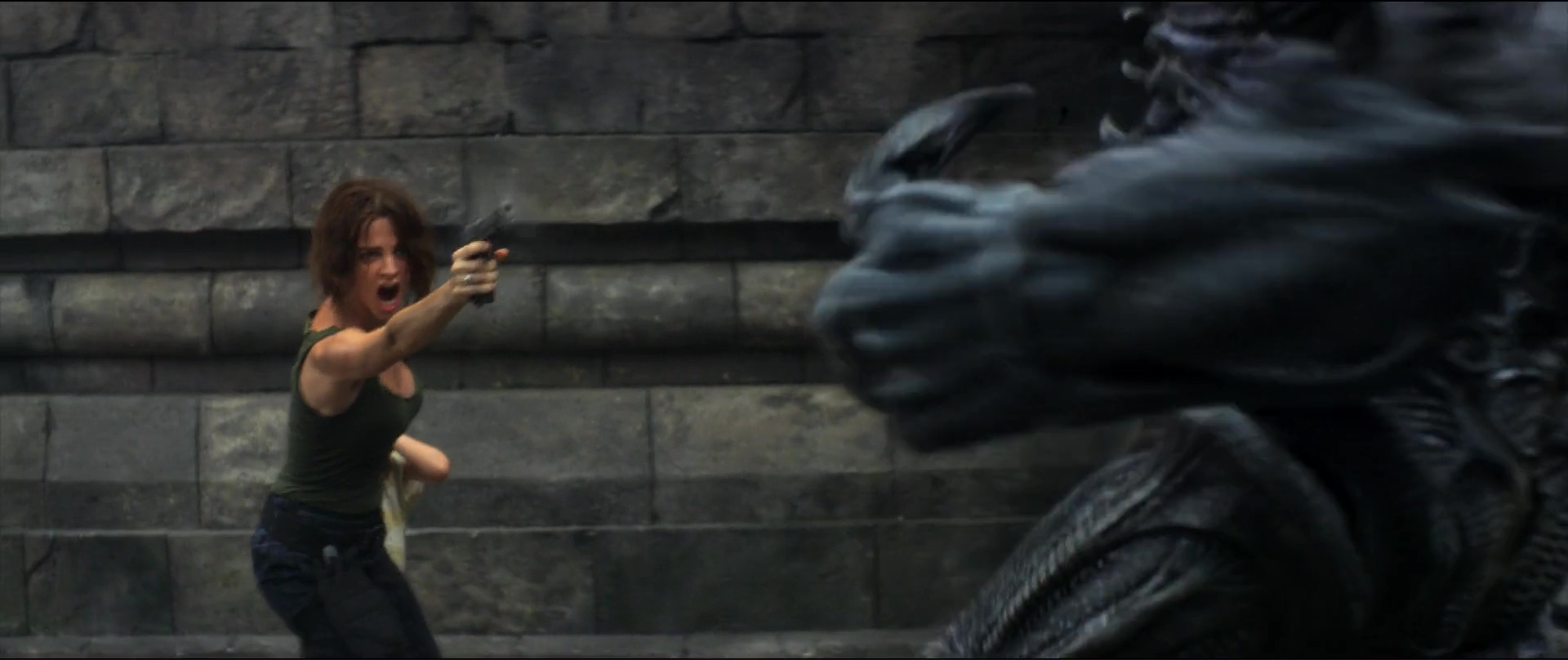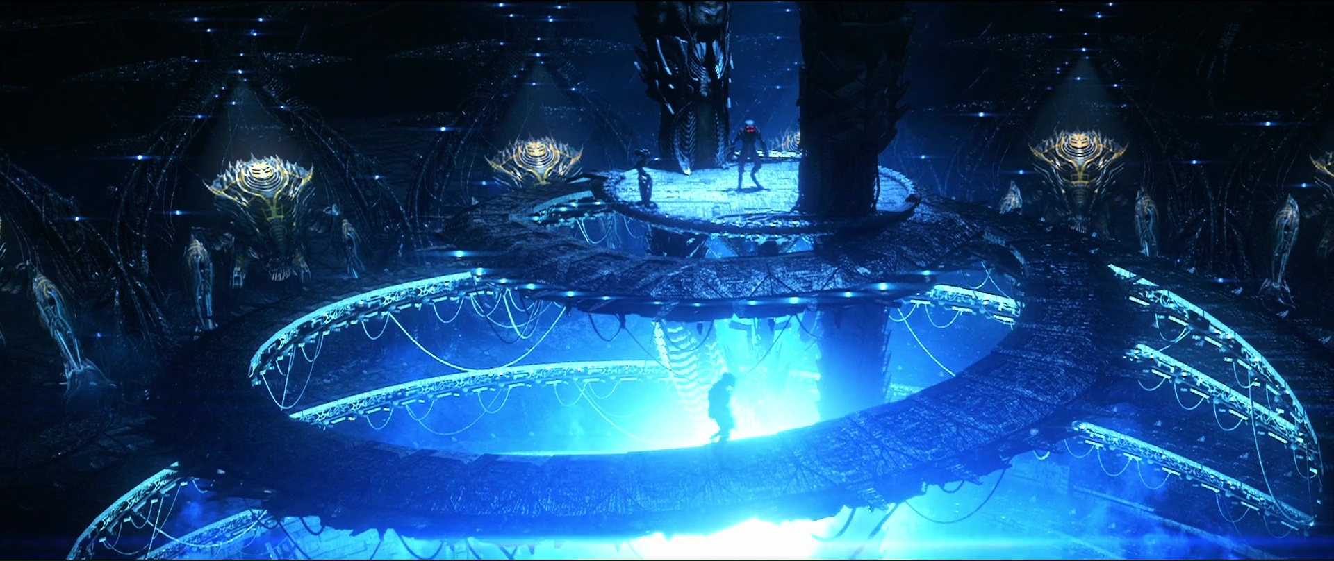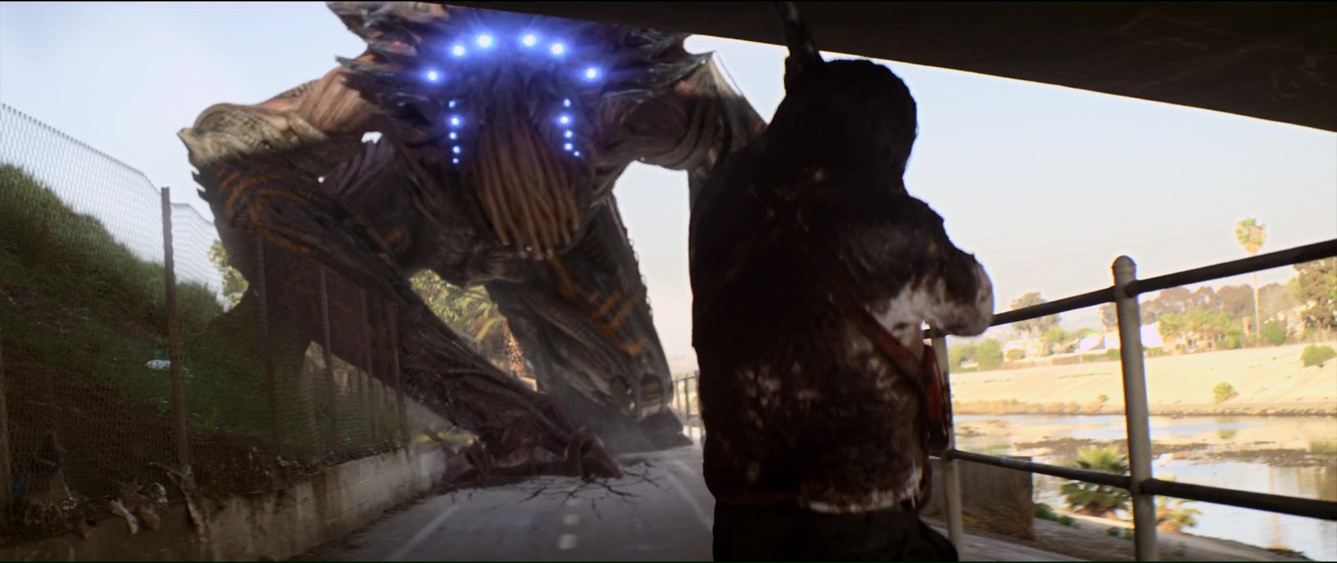 Ah ça, ça commence au bout de 5 minutes, juste le temps de bien nous faire comprendre que ce bon vieux Frank Grillo sera le héros de l’aventure, et niveau rythme, ça ne s’arrête pas jusqu’à au moins 40 minutes, le temps de délocaliser l’intrigue ailleurs, et de se faire plaisir en incluant au casting Iko Uwais et Yayan Ruhian (The Raid 1 et 2). Malgré son plus gros budget et ses ambitions, ça a un côté de série B un peu plus marqué, avec aliens pas beaux montrés très souvent, utilisation d’armes diverses et variées, combats à mains nues, explosions, combats de monstres géants même à un moment. Mais comment lui en vouloir face à tant de générosité. Pas une seule seconde d’ennui sur 1h45, de l’action, et même donc un casting de haute volée, ce qui nous change littéralement comparé au précédent film. Surtout que le film a l’intelligence de laisser les chorégraphies aux deux artistes de The Raid, pour forcément un résultat moins impressionnant dans les faits, mais qui a néanmoins de la gueule. Son côté B, encore plus présent d’ailleurs dans son final qui multiplie les bastons et autres fusillades, devient alors quelque peu la force du métrage. Cette envie de donner au public ce qu’il veut, sans mentir sur la marchandise, sans détours, sans chercher à se justifier de manière faussement intelligente, sans chercher à camoufler la vacuité de son propos comme dans de nombreux films de science fiction à gros budget. Beyond Skyline est tout simplement honnête envers son public. Il lui donne ce qu’il veut, sans le prendre pour un imbécile, et sans chercher à intellectualiser son propos.