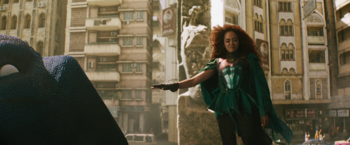 Dans Black Adam, le personnage est inexploité et se fait régler ses traumas en une phrase de personnages humains (pour résumer : « soit gentil, pas méchant ») en la personne d’une rebelle qui veut libérer le Kahndaq de l’Intergang, un groupe de mercenaires qui exploitent les ressources du pays, et de son fils qui va apprendre au anti-héros à se comporter comme un héros au sein d’une société qu’il ne connait pas, comme dans Terminator 2 mais en complètement raté. De ce fait, Black Adam n’est en réalité jamais le personnage principal de l’histoire, et le film aurait pu se nommer Justice Society et Black Adam tant le récit est parfois bien plus centré sur eux. Ce qui ne veut pas dire que leur traitement est plus réussi, c’est même le contraire. Car oui, dans le DCEU, on n’apprend jamais de ses erreurs. On balance donc une nouvelle chiée de super héros menée par Amanda Waller, qui a déjà à sa charge la Suicide Squad. Mais là ou James Gunn avait réussi à faire tenir et caractériser ses personnages dans The Suicide Squad (passons sous silence Suicide Squad premier du nom, avec lequel Black Adam partage une bande son FM complètement hors sujet), ici les scénaristes ne semblent pas savoir quoi faire de la plupart des héros qui sont mis en scène, la Justice Society donc. Hormis un Hawkman pas introduit mais assez développé par la suite, campé par un excellent Aldis Hodge, qui voit en Black Adam une Némésis dans le sens où ce dernier remet en cause ses valeurs super héroïque (mais pas d’inquiétude, en deux phrases ils deviennent copains), et qui est le véritable héros de l’histoire une scène sur deux, les autres membres de la Justice Society sont du genre absent. Atom Smasher est ainsi le sidekick comique du métrage, en plus d’être pour le moins inutile à chacune de ses apparitions, super héroïque ou non. Quant à Cyclone, elle est tout simplement transparente. Bien que les plans ou elle entre en action sont plutôt jolis. Car il n’y a pas tout à jeter dans Black Adam. Le rythme y est franchement bien géré, il n’y a aucun temps mort malgré des dialogues, des idées, et des personnages inexploités. Les scènes d’action sont de bonnes factures, nombreuses, aux CGI soignés malgré quelques errements, et iconisent des héros mis en scène avec classe, mais aussi avec un effet de déjà-vu. Et c’est là où le film se plante à nouveau, car tout aussi sympa soit il à suivre, Black Adam est un film totalement impersonnel, qui ne prend pas la moindre prise de risque et regarde ce qui s’est fait non seulement chez DC, mais aussi chez Marvel.