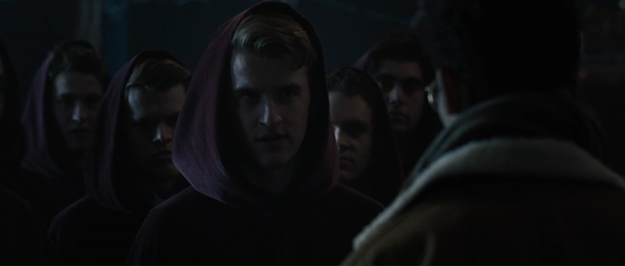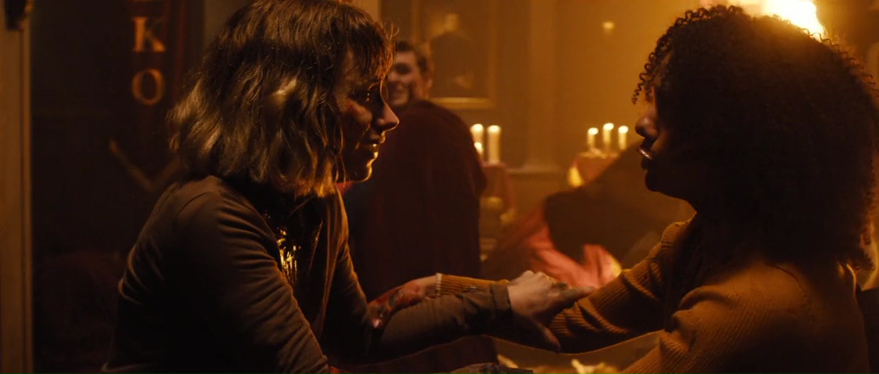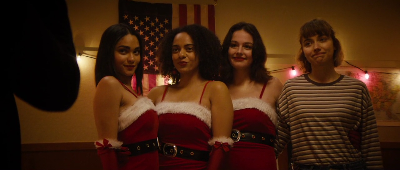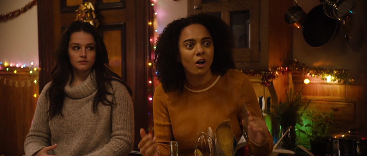 Black Christmas est donc censé être un film d’horreur, un slasher. Il faudra vérifier la définition, car un film d’horreur pour moi, ce n’est pas ça, même s’il vise un public adolescent. Alors oui, j’ai entendu dire que le montage original, R-Rated lui, durait 1h51, et avait été raccourci à 1h32 pour sa sortie, et ainsi avoir son PG13. Est-ce que ça aurait changé le message du film, sa réception, sa qualité ? Non. Car passé sa scène d’ouverture, ultra soft mais efficace, Black Christmas oublie ce qu’il est censé être pour être un film qui veut véhiculer un message. Mais pas un bon message. Comme je le disais, c’est dans l’ère du temps de parler féminisme, et dans le fond, je suis féministe. Je suis pour l’égalité homme-femme, et si c’est justifié et intéressant, ça ne me dérange pas qu’un film veuille véhiculer un message positif vis-à-vis de ça. Dans un film comme Charlie’s Angels, aussi moyen soit-il, cela ne me dérange pas, dans le sens où de toute façon, Charlie’s Angels parle d’une équipe de femmes qui botte des culs, dans le fun et la bonne humeur. C’est positif tout ça. Pas dans Black Christmas. Black Christmas tient la palme du message à côté de la plaque qu’on veut nous faire comprendre en insistant lourdement et en insérant dans le récit un personnage détestable là uniquement pour le dit message, et qui pire que tout, est important, et survit ! Pendant bien une heure donc, Black Christmas n’est pas un film d’horreur, pas même un film de genre malgré quelques rares tentatives de meurtres (hors champ hein, il ne faudrait pas choquer), et quelques hommages à l’original (l’héroïne, jouée par la pourtant douée Imogen Poots, se rendant au commissariat). Pendant une heure, Black Christmas veut être un film à message, et pour cela, il met en avant le personnage de Kris, joué par Aleyse Shannon, qui se bat pour les femmes.