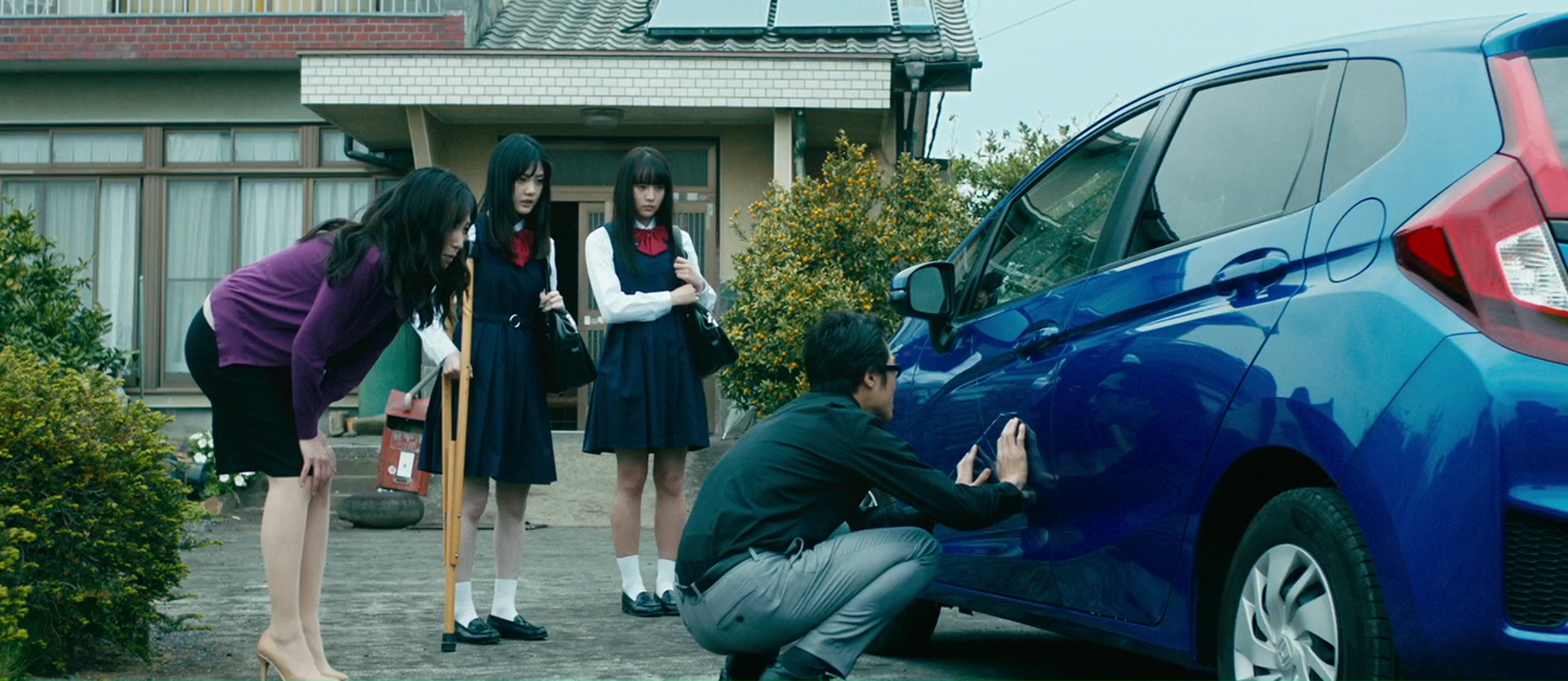 Du coup, même pendant la première moitié du métrage, lorsque Mei et Rana se lient d’amitié, et que Mei commence alors enfin à sourire (non car au début du film elle passe son temps à faire la gueule), et que la famille s’entend à merveille, ou va s’amuser dans un parc, il y a toujours quelques éléments pour contrebalancer l’ambiance joyeuse et nous rappeler que tout peut basculer. Ce qui va bien entendu arriver assez rapidement. Passé les premières 25 minutes, les choses vont se dégrader au sein de la famille Ueda, doucement mais sûrement. Chaque matin, une mauvaise nouvelle de plus semble s’abattre sur la famille, laissant les deux jeunes femmes perplexes. Un vase casé, des rayures sur la voiture, des difficultés financières. Ça pourrait sembler un peu énorme, mais ça fonctionne bien, le film restant sobre dans sa manière de mettre en scène les évènements, et le réalisateur semblant savoir ce qu’il fait. Il faut dire qu’en posant les bases et quelques petits éléments dés le début du récit, pas besoin d’en faire plus, et qu’il est aidé pour l’ambiance sonore par Endô Kôji, fidèle collaborateur de Miike (tiens, justement à l’œuvre sur Gozu), spécialiste des ambiances minimalistes. Mais forcément, étant très court, ce premier chapitre finit par se lâcher très rapidement, enchaînant après dans sa dernière partie les retournements de situations, quelques passages sanglants, les cris, les scènes étranges un peu plus frontales, avant de révéler toutes ces cartes, dans un final certes un peu déroutant et posant plus de questions que de réponses, mais il faut se rappeler qu’il ne s’agît que de la première partie. Dommage d’achever la vision par cette chanson de J-Pop pour le générique. Mais dans le genre, surtout quand on s’attend à tout sauf à un métrage réellement bien filmé et pensé, et bien, Black Maiden fait du bien. Espérons que la seconde partie tienne la route et que l’ensemble soit donc parfaitement recommandable.