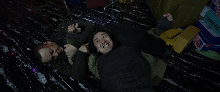 Le casting est des plus réjouissants. Bao Bei-Er est impeccable dans ce rôle à contre-emploi de baron de l’immobilier qui veut tout raser sur son passage, sadique, cruel, faisant preuve d’une violence rare même envers ses proches, mais ce n’est au final pas lui qui ressort gagnant de la réussite qu’est Black Storm. Il y a tout d’abord l’excellent artiste martial Liu Feng-Chao, ancien champion de Wushu jouant ici le rôle de l’homme de main sans pitié, charismatique à souhait, mais surtout Ashton Chen, ancien enfant star du cinéma de Hong Kong vu dans des films tels que les deux Shaolin Popey, The Saint of Gamblers ou encore Ten Brothers qui, à l’instar de Tse Miu (Eye for an Eye, Fight Against Evil 2), lui aussi enfant star du cinéma de Hong Kong, commence à s’imposer de bien belle manière dans le milieu du DTV d’action chinois. Le combat qui les oppose sur le toit d’un bâtiment est assez incroyable, assez jouissif, relativement long et dans lequel on a mal pour les combattants. De manière générale, ce sont toutes les scènes d’action du film qui sont réellement excellentes. Le réalisateur Qin Peng-Fei est un artiste martial, il a été assistant, voire carrément chorégraphe, de noms très connus du cinéma de Hong Kong comme Tsui Siu-Ming, Gordon Chan, Stephen Tung ou encore Derek Yee, et il ne faut que quelques secondes pour se rendre compte qu’il maitrise parfaitement son sujet. Il a à sa disposition plusieurs artistes martiaux très confirmés, extrêmement doués, et il en fait parfaitement usage dans des scènes d’action qu’il rendra parfaitement dynamiques, avec un excellent travail de caméra, une parfaite utilisation des décors et des environnements, une fureur de tous les instants et des chorégraphies très travaillées. Alternant plans larges, plans serrés, voire plan séquence lorsque c’est nécessaire, les combats procureront une grande jouissance à qui aime un tant soit peu le cinéma martial asiatique. Ça glisse sur le sol, ça se met joyeusement sur la gueule à grands coups de poings, de pieds, de couteaux, de crochet de boucher, ça explose du mobilier, que ce soit en un contre un, deux contre deux, un contre plein, et on sent une réelle envie de nous plonger une ou deux décennies en arrière, lorsque l’amateur de ciné HK découvrait des films comme SPL, Flash Point ou Special ID. Mention spéciale au combat dans l’ascenseur, renvoyant forcement à celui de The Raid 2, peut-être le meilleur du film.