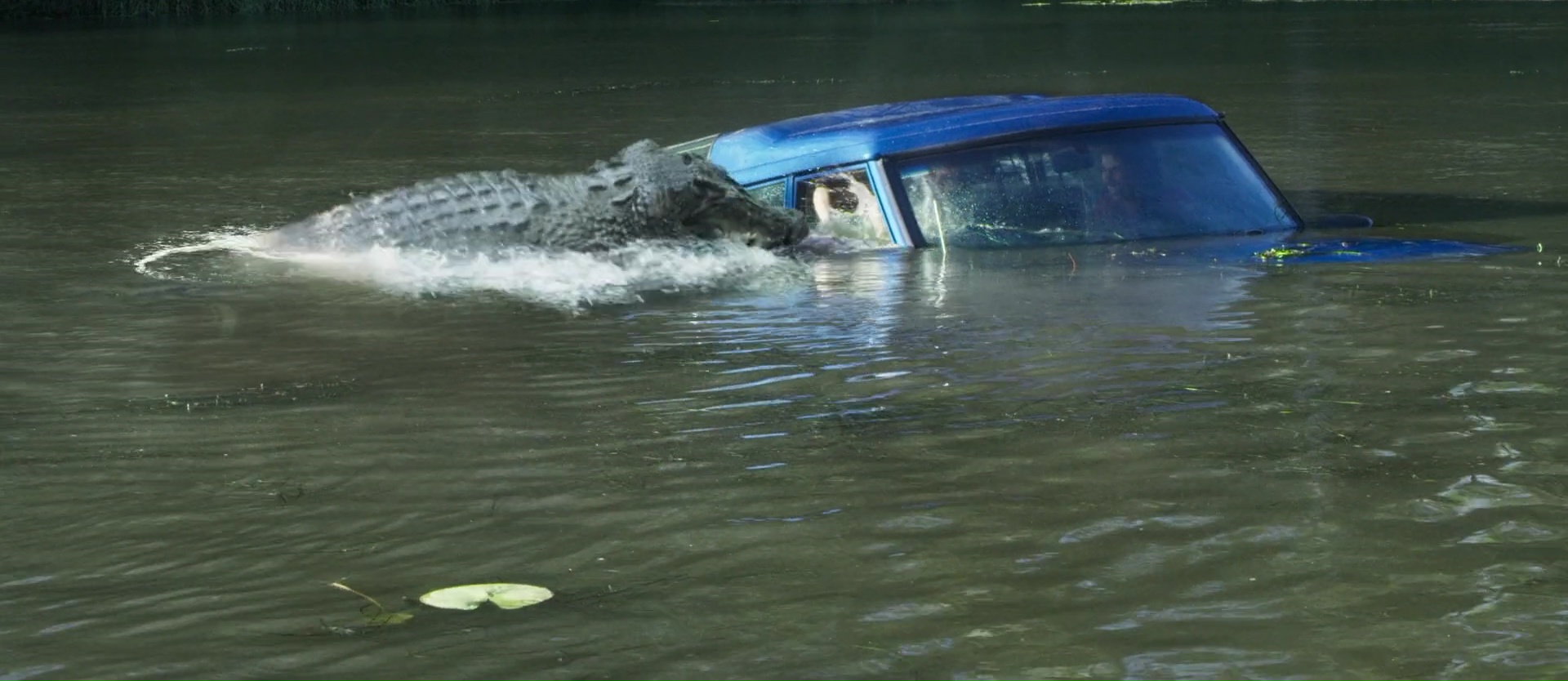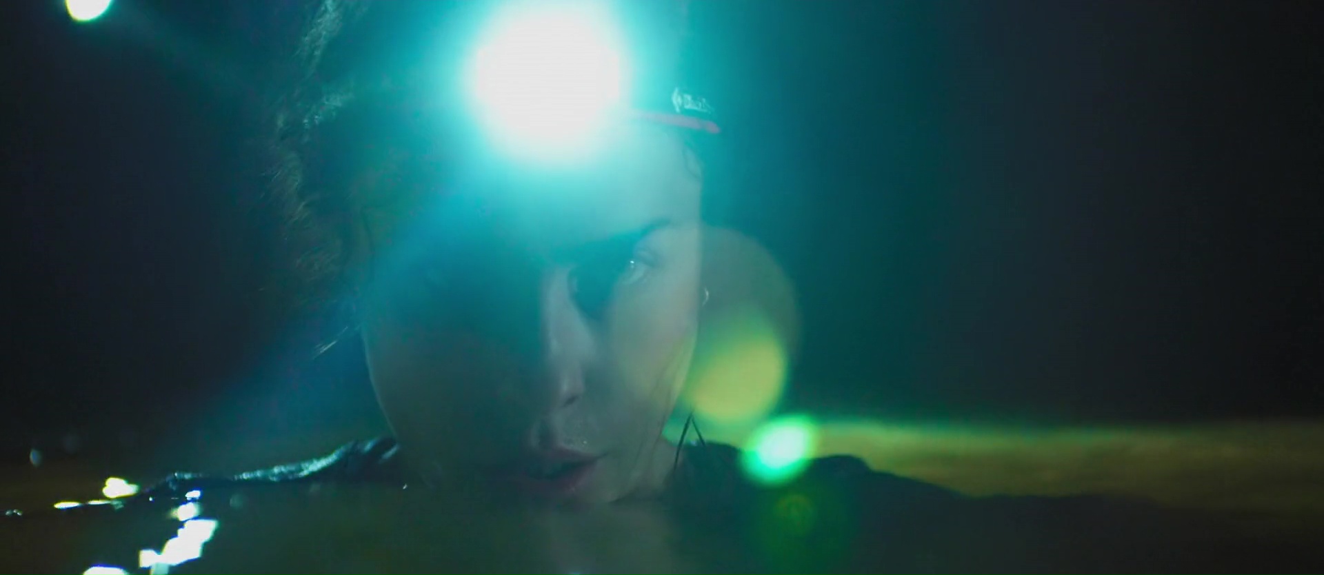 Mention spéciale pour le coup au scénario, simple comme toujours avec le genre, mais qui tente malgré tout, une fois des personnages en moins dans la dernière demi-heure, de rajouter des arcs narratifs pour maintenir l’attention, mais qui ne servent strictement à rien. Et le crocodile dans tout ça ? Comme prévu, peu présent à l’écran, mais constamment dans la grotte pour faire monter la tension, ça ne fonctionne pas sur la durée, le réalisateur ayant recours encore et toujours aux mêmes éléments pour nous signaler sa présence, pour teaser sa future attaque. Des goutte d’eaux qui font des petits bruits, une petite vague à la surface, un silence beaucoup trop lourd dans un endroit exigu et forcément propice aux attaques. Voilà en gros les trois types d’annonce que le film va nous offrir, tout le long. Rien de plus. Le crocodile sera finalement peu montré, et il faut avouer que c’est tant mieux. Mais que ces attaques sont brouillonnes, et souvent filmées avec les pieds, abusant de gros plans avec un montage ultra cut. De temps en temps, l’on devinera un œil, ou une mâchoire, mais rien de plus, avant de voir finalement du sang dans l’eau, et voilà. Sauf que forcément, le crocodile, il faudra par moment le montrer un peu plus, notamment dans le final, et son rendu visuel en CGI n’est pas bien glorieux. Comme souvent dans ce genre de productions au final vous me direz. Un métrage décevant sur toute la ligne, qui n’ajoute rien au genre, et ne parvient même pas à être véritablement efficace. On a vu pire, mais on a également vu mieux.