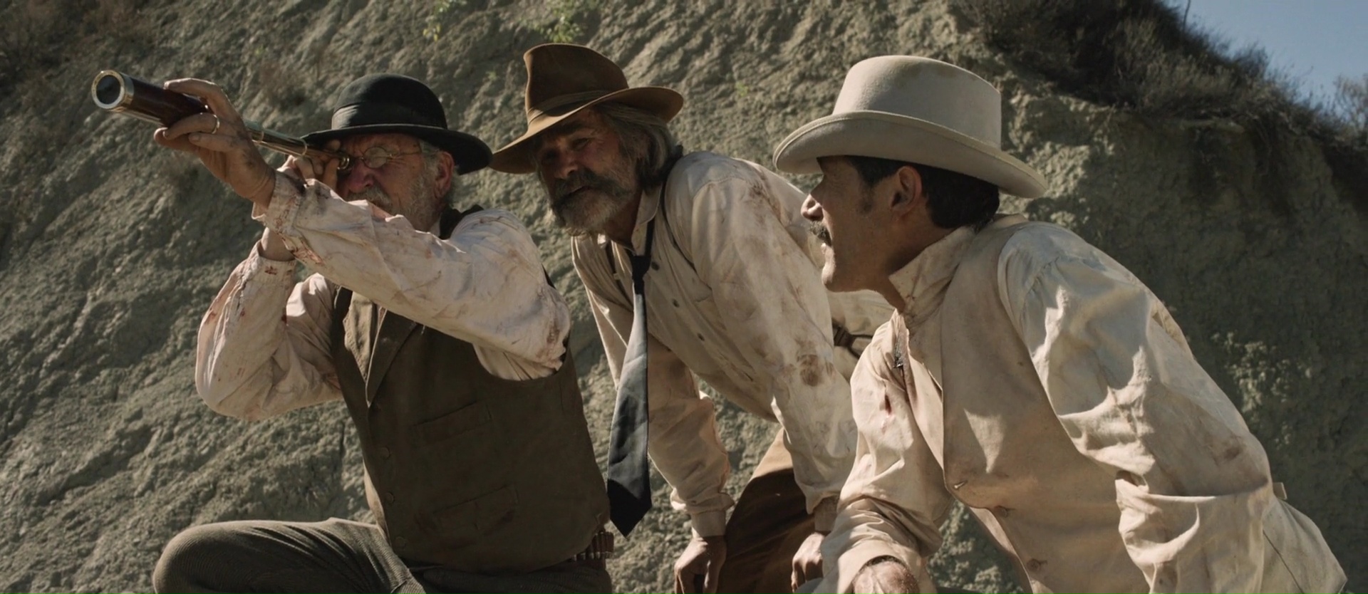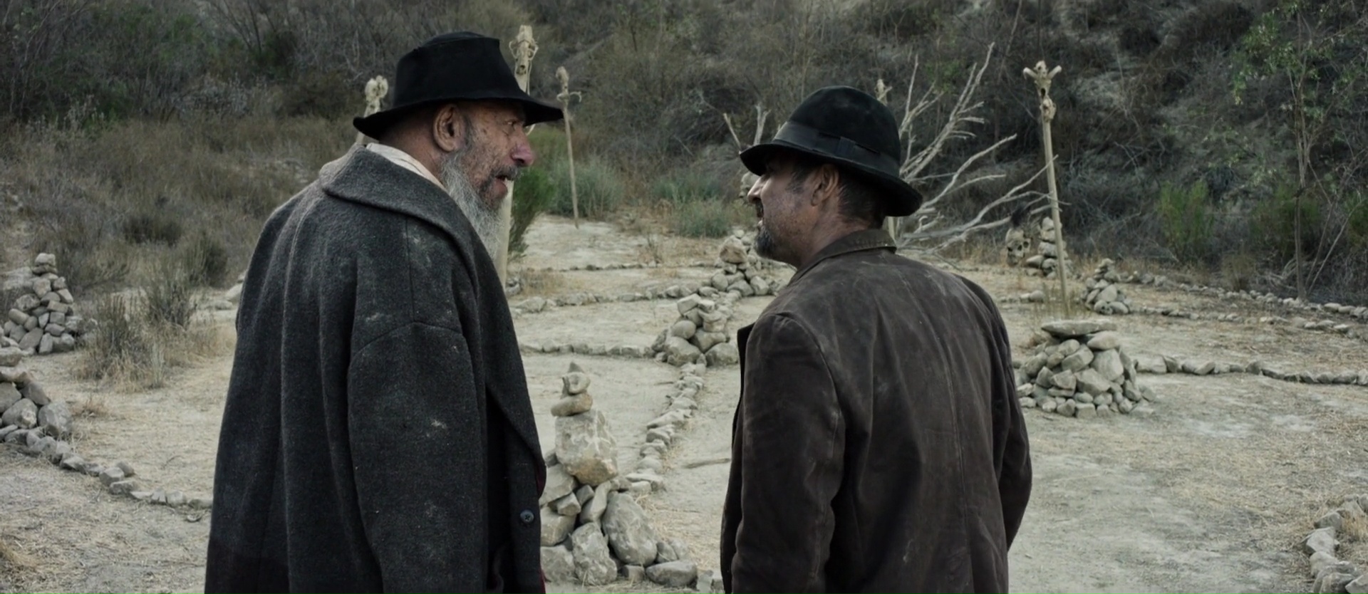 On pourra d’ailleurs, quitte à lui reprocher quelque chose, dire que la présentation des personnages, passé la géniale introduction, ne fait que nous présenter des clichés. Ce serait dommage de s’arrêter là puisque la suite laisse aux personnages la chance de gagner en profondeur. Mais comme je vous le disais, Bone Tomahawk tente de mixer deux genres, le western, qu’il représente à la perfection, et le film de cannibales, le film d’horreur donc. En ce sens, c’est réussi également, puisque même si le réalisateur tarde à nous les mettre en avant (il faut attendre la dernière demi-heure), il laisse planer un sentiment horrifique sur tout son métrage en dépeignant son univers de la manière la plus violente qui soit. Alors forcément, après ce trajet épuisant pour nos personnages, lorsque l’horreur même débarque, le réalisateur se lâche totalement, livrant des scènes d’horreur viscérale souvent bien plus efficace que ce que le cinéma de genre a l’habitude de nous livrer, de par son côté réaliste, rentre dedans, et qui n’a pas peur de nous montrer des actes horribles frontalement, même si souvent brièvement. Si bien que les deux genres se marient parfaitement grâce à la maitrise de S. Craig Zahler, à la fois au scénario, solide, mais surtout à la mise en scène. Car même si Bone Tomahawk est pour beaucoup un vulgaire DTV (pourquoi les films du réalisateurs n’ont pas droit au grand écran en France ????), il a clairement été pensé comme un film de cinéma. C’est sublime, le cadre gigantesque des plaines désertiques à la fois majestueux et étouffant, c’est maitrisé, autant dans les moments calmes et d’attentes que lors des rares moments de violence qui s’enfuient aussi rapidement qu’ils débarquent. Mission totalement accomplie.