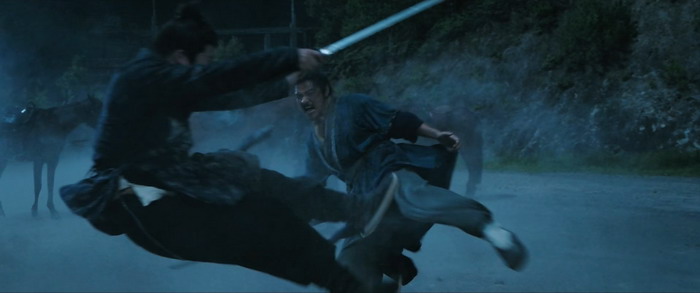 Il y a tout d’abord Huang Tao, vu dans Eye for an Eye 2 ou Blade of Fury, qui campe parfaitement ce sabreur poète, l’antagoniste du film, bien plus nuancé qu’à l’accoutumé et du coup bien plus intéressant. Mais celui qui tire son épingle du jeu, c’est l’omniprésent Lu Li-Qun (Ace Bodyguard, Desperado), qui devient petit à petit une figure incontournable du cinéma d’action des plateformes de SVOD chinoises. Bien qu’il ne soit pas un acteur martial à la base, il reste malgré tout très athlétique et a une réelle présence dans toutes ses scènes. Son charisme bien moins lisse que bon nombre de jeunes acteurs chinois presque interchangeables apporte une réelle crédibilité aux scènes de combats avec son jeu sobre qui colle parfaitement à son personnage, et son implication de manière générale dans chacun des plans où il est présent. Son rôle de sabreur handicapé est des plus intéressants, bien que cela ait déjà été fait plusieurs fois auparavant, et le réalisateur arrive à le rendre intense. Les scènes de combats sont intéressantes. Malgré des ralentis un peu trop appuyés et putassiers lors des mouvements les plus impressionnants, l’ensemble est réellement lisible et les chorégraphies sont simples mais soignées et nerveuses. Le chorégraphe n’hésite pas à verser de temps à autres dans le wire-fu même si ce n’est pas ce qui caractérise le plus les affrontements. La caméra est moins virevoltante que chez un Qin Peng-Fei (Blade of Fury), les plans sont plus posés, ce qui n’empêche pas les combats d’être dynamiques, parfois brutaux, avec une fatigue qui se ressent chez les personnages. Le climax est bien entendu la scène finale, au col de Baimagu que les protagonistes essaient d’atteindre, une scène marquante car changeant un peu les codes qu’on a l’habitude de voir dans les DTS chinois du genre, peut-être la seule scène qui ne file pas tout droit sur des rails comme le reste du film. On sort de Bound of a Promise plutôt enchanté, avec cette impression d’avoir certes vu un petit film, mais un petit film solide et efficace.