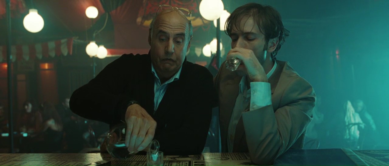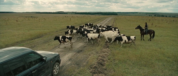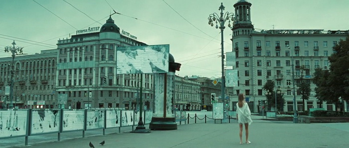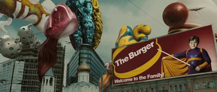 Oui, c’est bien notre société actuelle, notre société de consommation, et surtout la manière dont les dites société nous vendent leurs produits qui nous est balancée à la face ici. Un véritable miroir de notre société, et donc une critique assez virulente. Sur le papier donc, Branded a des choses à dire, des choses à faire, et qu’il emprunte le ton du sérieux ou de l’humour, il y a toujours de quoi critiquer. Le ton employé par les deux réalisateurs, également scénaristes et producteurs, est par contre immédiatement un peu plus confus, abordant un sérieux à toute épreuve durant la première partie, tout en nous offrant des scènes sortant de je ne sais où. Des étoiles dans le ciel formant une vache, un jeune garçon qui se fait frapper par un éclair, avant de partir sur une critique sérieuse de notre société. Le ton change assez souvent, tout comme du coup les moyens employés pour mettre tout ça en image, passant ainsi d’un format cinémascope hyper classe à de vieilles images 4/3 avec un grain hyper prononcé pour des flashbacks, ainsi qu’un mélange entre le Russe et l’Anglais pour les langues parlées. Un petit bordel certes, mais dans sa première partie, un bordel qui frappe là où ça fait mal, et j’admet avoir adhéré à cette première partie, bien qu’un peu longue (quasiment une heure). Misha est surdoué, Abby veut se lancer dans le business et tombe amoureuse, le méchant Bob ne voit pas ça d’un bon œil, un méchant très méchant aide les fastfood à se relever. La première heure fonctionne, d’autant que le casting est bon, notamment avec Ed Stoppard dans le rôle principal, que l’on pouvait voir dans Le Pianiste (2002 déjà), ou qui, pour les curieux, avait livré des voix pour le jeu Goldeneye sur Nintendo 64.