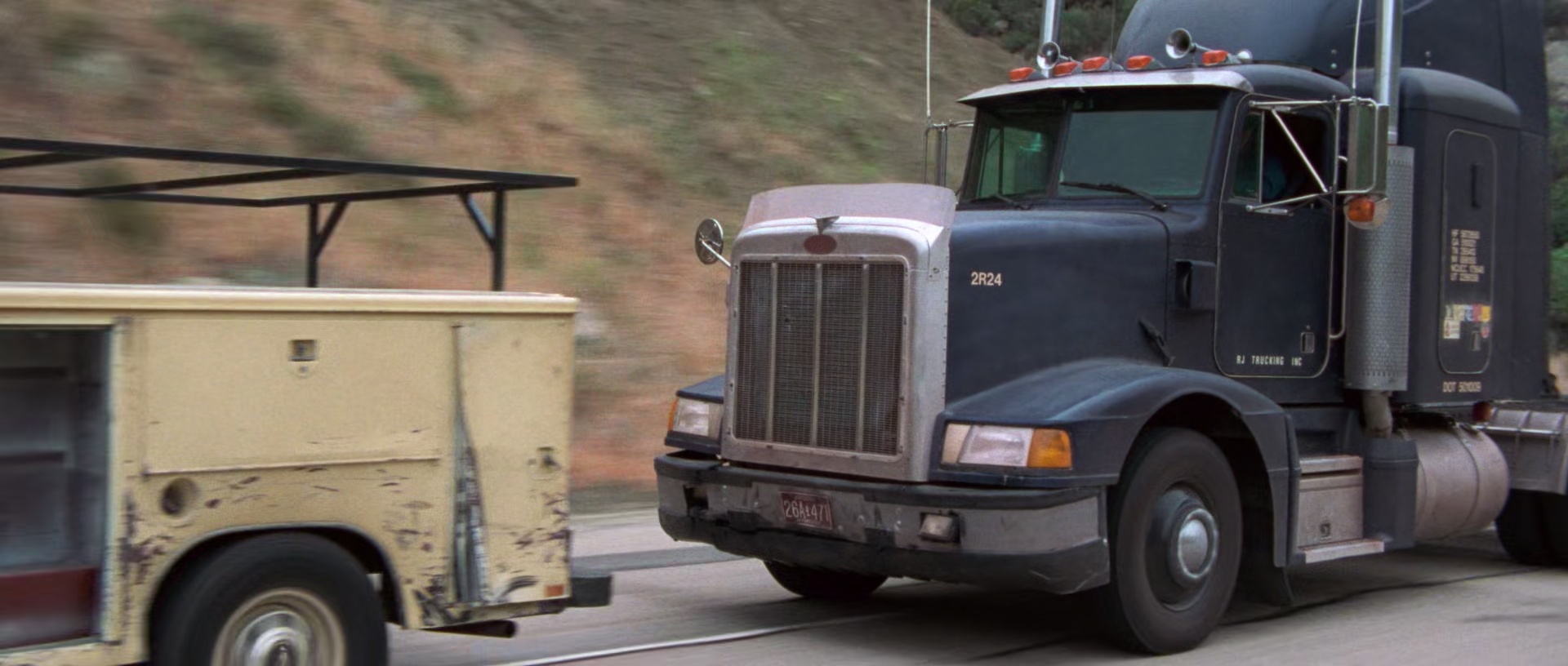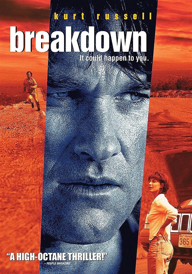 Breakdown, voilà bien le film que tout le monde a vu. Pas un chef d’œuvre, non loin de là, mais pourtant, régulièrement, je le vois, dans ma collection, et je ne peux m’empêcher de prendre le dvd et de le revoir. Et oui, certains, quand ils veulent entendre parler de la famille et voir des voitures sur la route qui se crashent, ils se regardent l’intégrale Fast and Furious (hein John), et bien moi, je me refais Breakdown. Oui, c’est plus réaliste, les crashs sont réels, et la vision de la famille est bien différente, mais que voulez vous. Breakdown, c’est un concept simple, raconté de manière simple, et qui vise en premier lieu l’efficacité, la tension, ne veut pas que l’on décroche, et finalement, pendant 1h33 seulement, on est scotché à notre siège, et nos yeux ne dérivent pas de l’écran. L’époque en quelque sorte, 1997, où les gros films étaient encore parfois courts, et ne perdaient pas de temps en bavardages inutiles. Breakdown donc, c’est l’histoire de Jeff et Amy. Enfin, surtout Jeff, joué par notre énorme Kurt Russell (New York 1997, Jack Burton, The Thing, Bone Tomahawk). Un couple normal dirons nous, qui malgré les apparences, avec leur voiture flambant neuve et bien couteuse, est un couple comme on en connaît tous. Au bord de la faillite, traversant le pays pour une vie meilleure ailleurs, où il faudra tout recommencer : nouvelle maison, nouveau travail, nouveaux amis. Seulement comme c’est souvent le cas dans le cinéma Américain, les routes paumées de l’Ouest Américain ne sont pas forcément hospitalières. Et alors que le couple tombe en panne, ils tombent sur Red, un bien gentil camionneur joué par J.T. Walsh (le couple aurait du jeter un œil à sa filmographie pour savoir qu’on ne peut pas lui faire confiance) qui propose de les amener au restaurant le plus proche pour appeler une dépanneuse, se mettre au frais en attendant. Le cauchemar commence, puisqu’Amy partira avec Red, tandis que Jeff lui restera avec la voiture, et comprendra que non, sa voiture n’est pas en panne, un câble a été débranché. Reprenant la route pour rejoindre sa femme au restaurant, c’est l’horreur. Elle n’est pas là, Red n’est jamais venu.