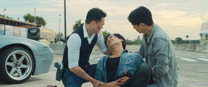 Peu de temps après le tournage en Thaïlande, Wilson Chin tombe gravement malade et lorsqu’il décède d’un cancer du pancréas en 2020, Burning Blood est mis en suspens pour une durée indéterminée. Désireux de récupérer quelques deniers, les producteurs décident au bout d’un moment d’appeler à la rescousse le monteur chevronné Wong Hoi (Paradox, Warriors of Future) afin de sauver le projet et qu’il accouche d’un film sortable dans les salles. Sur le papier, tout est là pour passer un bon moment d’action : Des flics corrompus, des trafiquants sans foi ni loi, une équipe anti-drogue pleine de rivalités. Et même dans les faits, le réalisateur arrive à mettre en place une ambiance moite, pleine de tension, avec des trahisons qui vont venir rapidement fissurer la cohésion de notre groupe de héros, des alliances à contrecoeur pour arrêter un mystérieux criminel. Mais entre hommage et recyclage, Burning Blood se prend très rapidement les pieds dans le tapis en peine clairement à trouver son souffle. A vrai dire, il y a plusieurs choses qui à chaque fois donnent espoir, mais qui retombent à chaque fois comme un soufflet. Le casting charismatique est des plus intéressants, les charismatiques Jordan Chan et Michael Tse en tête, mais ils sont complètement sous exploités, avec des personnages jamais approfondis (même le strict minimum n’y est pas), en plus d’être clichés, à qui on donne des répliques convenues qui à aucun moment ne leur donne envie de s’impliquer un minimum. Le film traite de camaraderie, de trahison, de culpabilité, mais la caractérisation des personnages ne permet jamais de traiter ces thèmes correctement car on se fiche éperdument de leur sort. On se contente de regarder, platement, sans jamais ne rien ressentir pour eux.