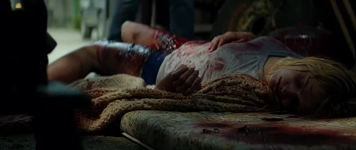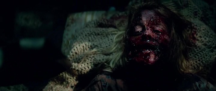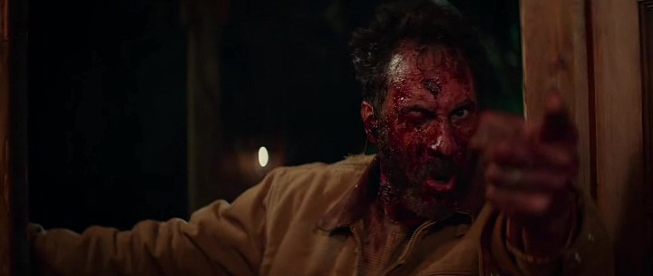 Alors oui, si vous avez vu et aimez le métrage original, ne voyez pas ce remake. Si vous avez vu et pas aimé le métrage original, ne voyez pas le remake. Si vous êtes curieux et n’avez pas vu l’original, regardez le ! Si vous n’avez pas vu l’original et adorez vous faire du mal, ben lancez vous tant qu’à faire, regardez le 1, le 2, le Patient Zero, puis enchaînez sur le remake et pendez-vous ! Non pas que tout soit mauvais ici, le budget permet même quelques beaux plans qui n’étaient pas dans l’original, avec par exemple des plans sans doute filmés en drones au-dessus des routes et des forêts, rappelant autant le remake de Evil Dead que Shining. Et pour bien appuyer l’effet, on nous met la musique de Shining en plus dessus, c’est vous dire comment on nous prend pour des cons ! Bon oui, on pourra dire que les effets gores sont réussis également, par moment un poil plus que dans le métrage original, budget oblige, mais est-ce assez face à un métrage qui ne prend aucun risque, ne dévie jamais du scénario original ? Absolument pas. Aucune surprise à l’horizon, aucun changements majeurs (on nous ventait des morts différentes, et ce n’est quasiment pas le cas), quelques blagues en moins (pfff la blague du fusil bordel !), des acteurs encore plus mauvais que dans l’original.