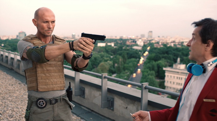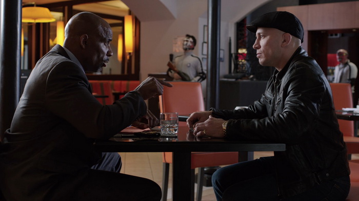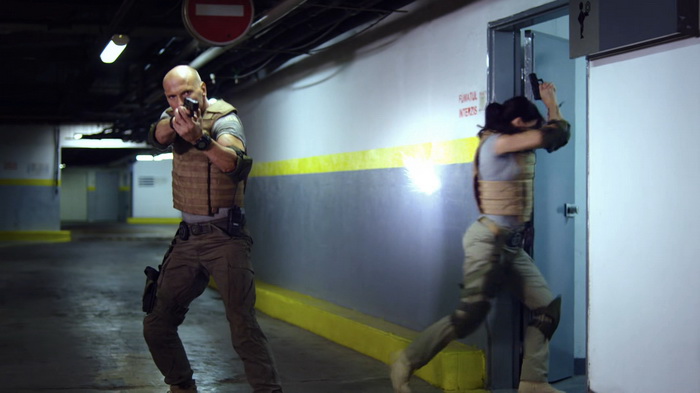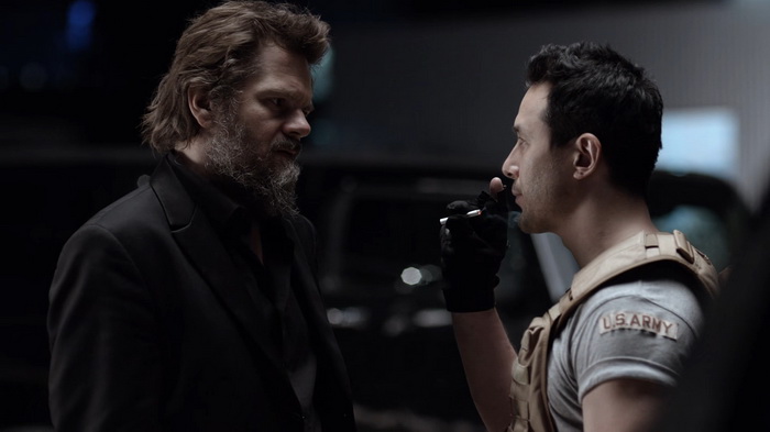 Seagal est fatigué, très fatigué, et ne fait absolument plus rien. Il n’est d’ailleurs présent que 15 minutes durant lesquelles il fait presque peine à voir. En surpoids total, on sent même qu’il a du mal à monter des escaliers. Alors on le fait se déplacer d’une chaise à une autre, au moins ça lui fait faire des pauses. On le retrouve ici avec son style des années 2010, épais manteau très serré pour le compresser un peu, son bouc touffu, ses lunettes teintées, sa voix monocorde et son visage monoexpressif. Il se prend toujours extrêmement au sérieux sans se rendre compte qu’il en devient ridicule au plus haut point. Car voir ce gros pataud de sans doute plus de 150 kilos, du haut de ses 64 ans, être à la tête d’un groupe de guerriers bien musclés et bien vénères, ça fait sincèrement rire tellement ce n’est plus crédible. Au moins ici, il n’emballe pas une jeunette de 23 ans, c’est déjà ça. Oui, il est loin, très loin le temps des Nico, Justice Sauvage et autre Désigné pour Mourir. Il est là sans être là, il n’a plus aucune envergure, mais par contre il est en gros sur l’affiche et c’est à lui que revient le droit de péter la gueule au grand méchant du film parce que Seagal pendant 15 minutes est bien plus important que Luke Goss pendant 1h15 ok ? Et puis il est producteur du film, c’est plus facile comme ça. En guise de sidekick, qui en fait sera le rôle principal du film, on retrouve donc un des rois du DTV des années 2010, à la filmographie de plus de 60 films en 20 ans de carrière, dont 90% ne dépassent pas les 5/10 sur IMDB, le bien nommé Luke Goss (Death Race 2, Hollow Point). Et vous savez quoi, le jeu d’acteur est tellement pitoyable dans ce film que c’est Goss qui s’en sort le mieux. Pourtant en terme d’acteur monolithique qui a du mal à faire ressortir même des émotions simples, il se pose là. Je vous laisse imaginer le talent du reste du casting. On notera également au casting la présence de Georges St-Pierre, combattant en MMA, qui ne semble avoir clairement jamais pris un seul court d’acting. Mais de toutes façons, on ne sait pas grand-chose des personnages, on ne se soucie pas de ce qui leur arrive tant ils sont peu engageants et n’ont aucune nuance, et leurs dialogues sont maladroits au possible.